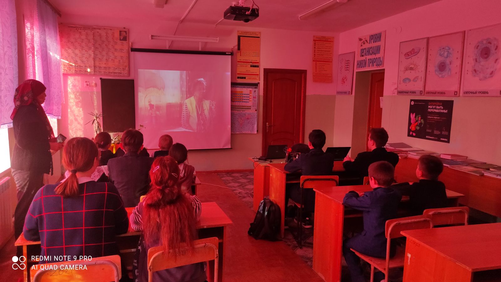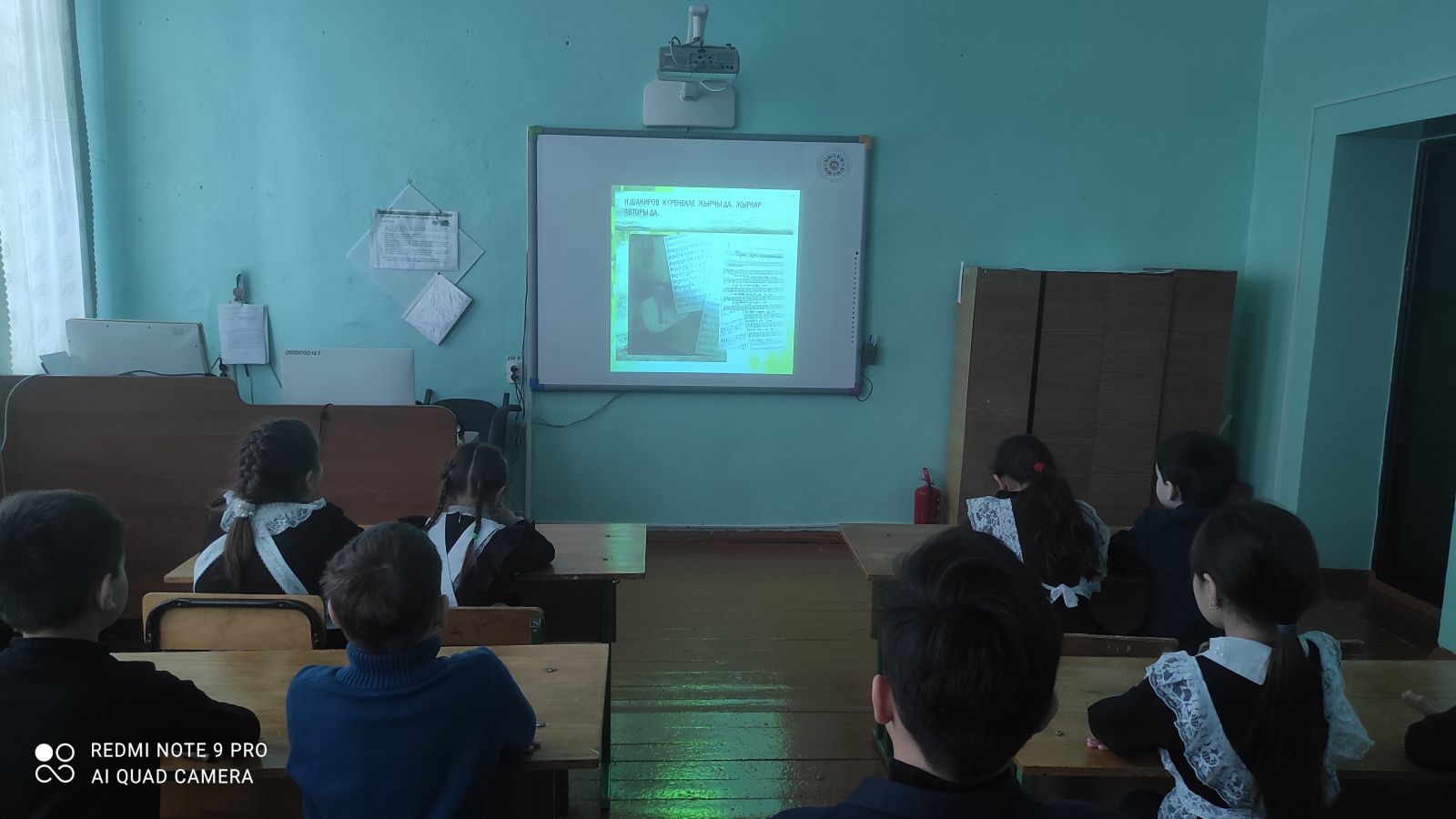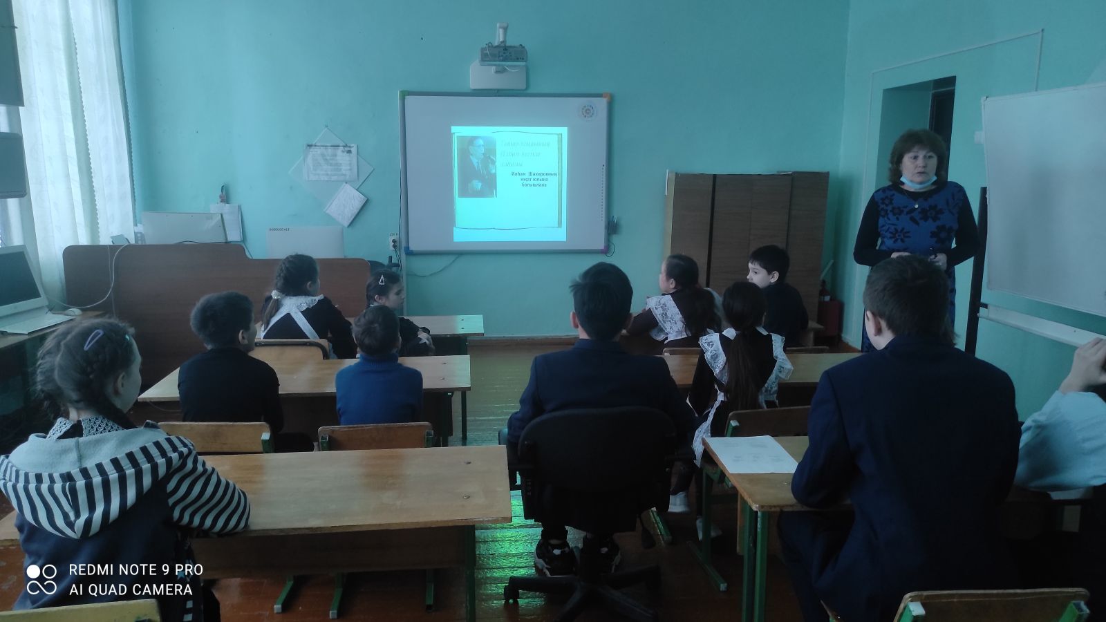 Учитель родного татарского языка и литературы Тахавова С.А. для учащихся 1-9 классов организовала просмотр видеофильма "Экскурсия в квартиру-музей Мусы Джалиля в г.Казань", показ презентации "Татар җырының Илһам исемле илһамы". Учащиеся познакомились с творчеством Ильгама Шакирова, прослушали его песни.