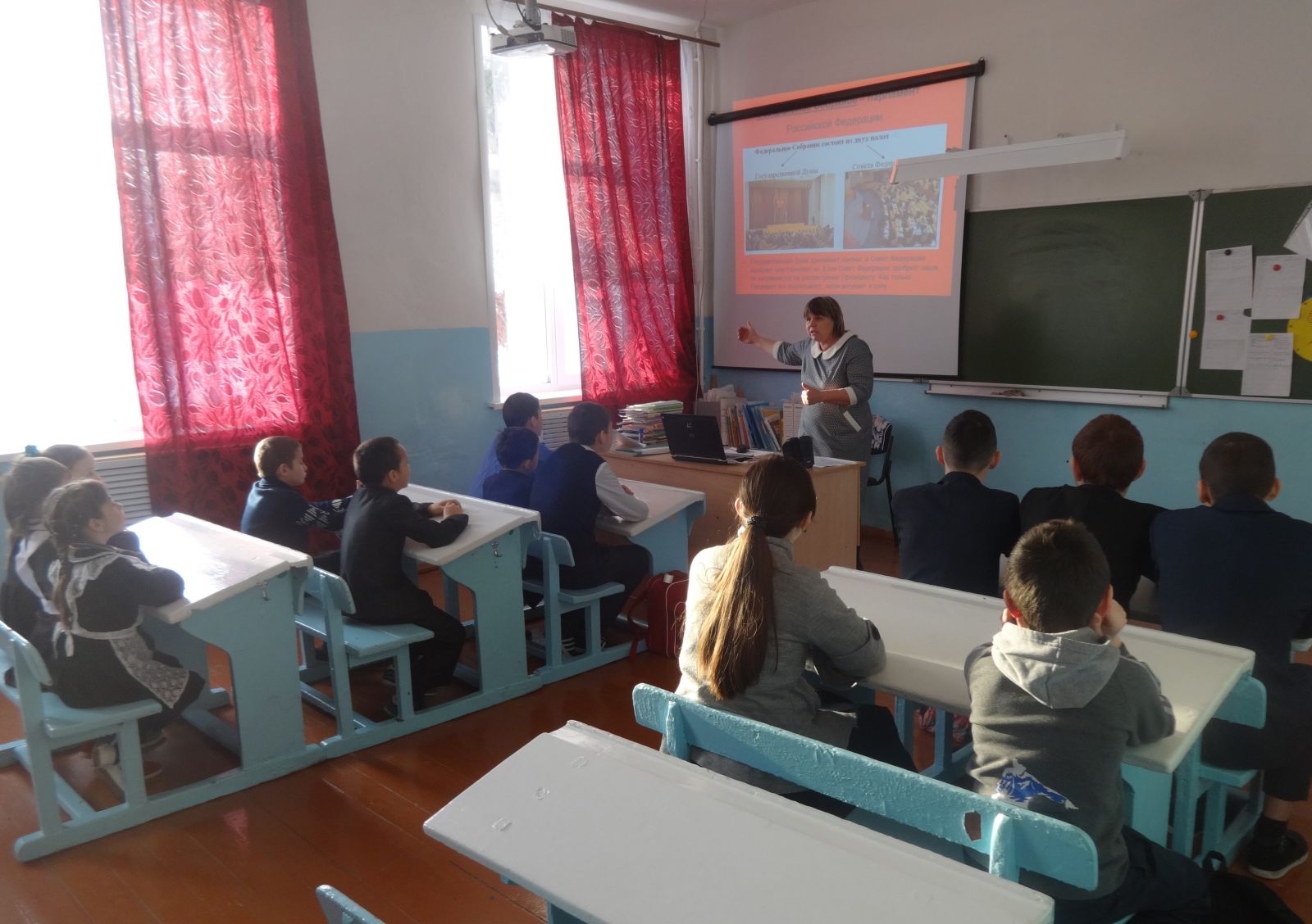 Бүген ОРКСЭ укытучысы Фәсхетдинова Ф.Ф. 1-4 сыйныфларда «Татарстан – безнең уртак йортыбыз»дигән темага Парламент дәресе үткәрде. Дәрес эшлекле уен формасында узды. Укучылар үзләренең туган телләре турында чыгышлар әзерләделәр. Фәридә Фәридовна дәрестә катнашучыларның игътибарын милли гореф - гадәтләрне саклау мөһимлегенә юнәлтте. 5-9 сыйныфларда дәресне тарих һәм җәмгыять белеме укытучысы, Сугышлы җирле үзидарә депутаты Тахавов Р.М. үткәрде. Укучыларга дәүләтнең барлык яшәүче халыкларның традицион мәдәниятләрен ничек актив үстерүе һәм сакчыллыгы турында сөйләделәр. Укучылар җәмгыятьнең ячейкасы турында фикер алыштылар, гаиләдән парламентка кадәр юл үттеләр, депутатның нинди сыйфатларга ия булуын белделәр, депутатлар һәм Татарстан Республикасы парламенты белән таныштылар.