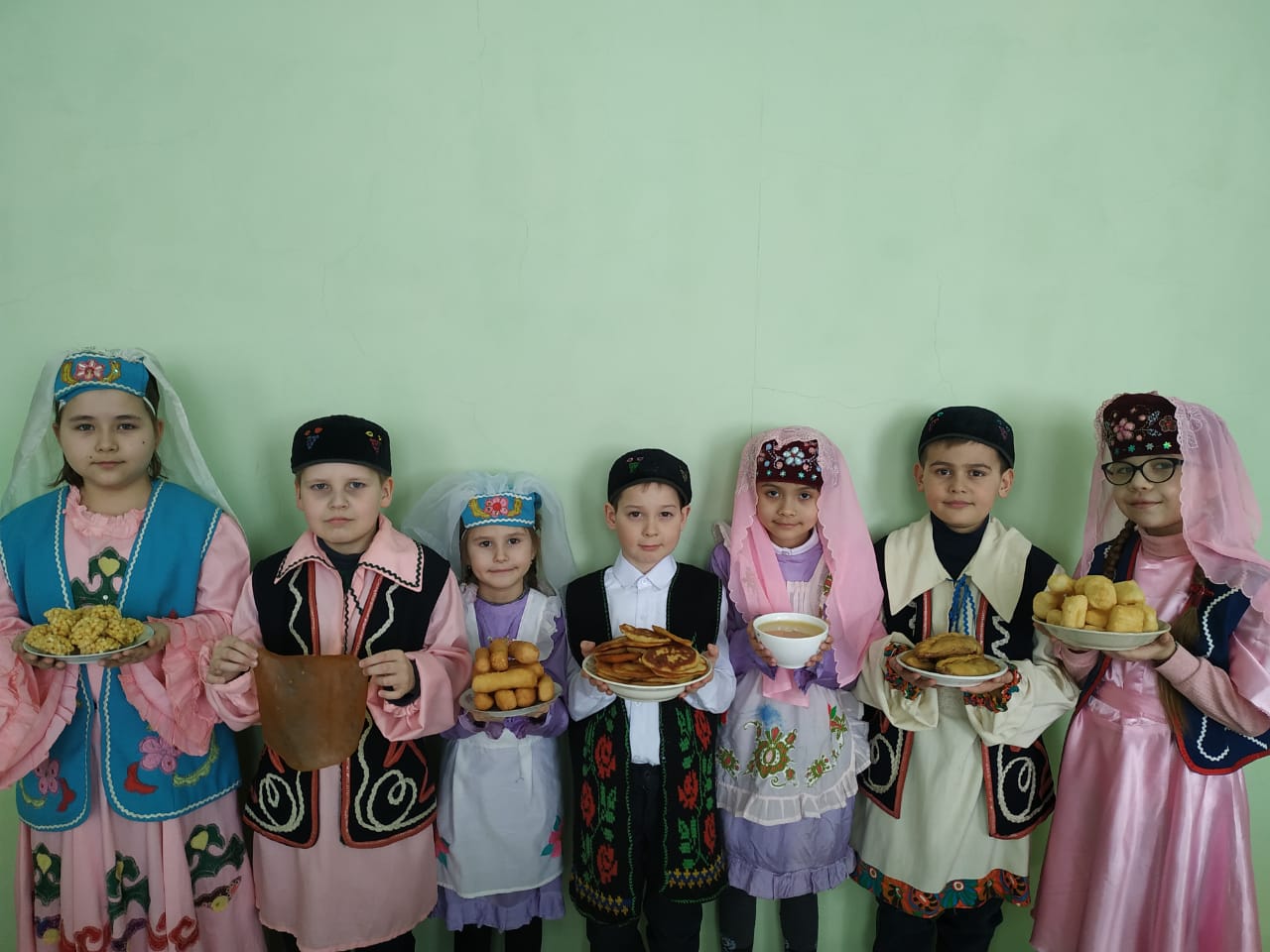 В нашей школе продолжаются мероприятия посвященные Году родных языков и народного единства . Учащиеся знакомятся с национальными костюмами народов живущих в Татарстане, изучают их традиции и обычаи. В этом им помогают и родители учащихся . Они приготовили национальные угощения народов, которые живут у нас в селе. Это - чак-чак, бавырсак, пастила, чувашская сладость из калины, узбекский плов и многое другое. А потом ребята пили чай со сладостями.