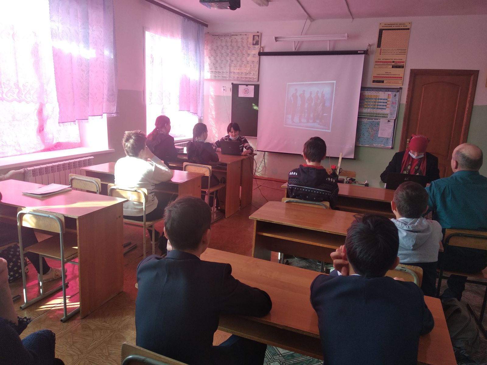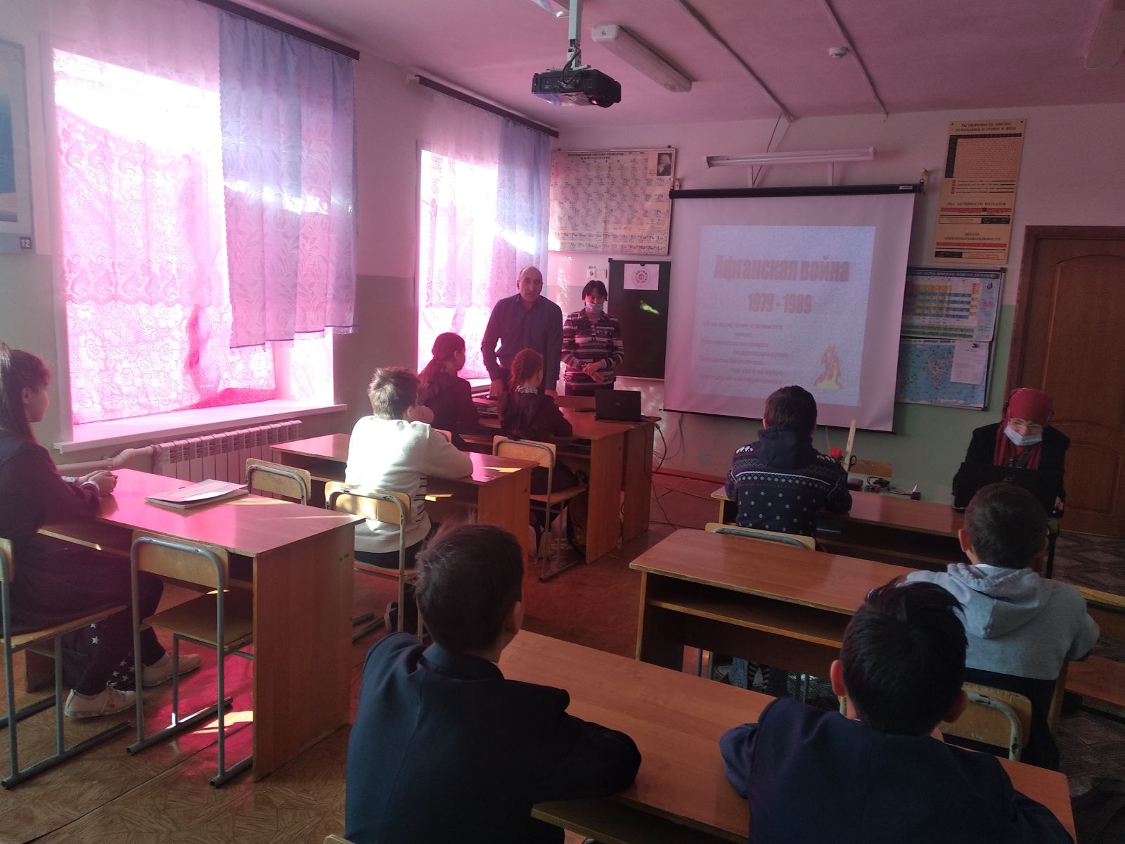Тарих укытучысы Тахавов Р.М. рус теле һәм әдәбияты укытучысы Хабибуллина Л.Т белән укучыларга Әфганистан сугышы көннәрен искә төшерделәр, интернационалист солдатлар кичергән югалтулар һәм авырлыклар турында сөйләп уздылар. Шулай ук "Әфган" документаль видеоязмасын күрсәттеләр.