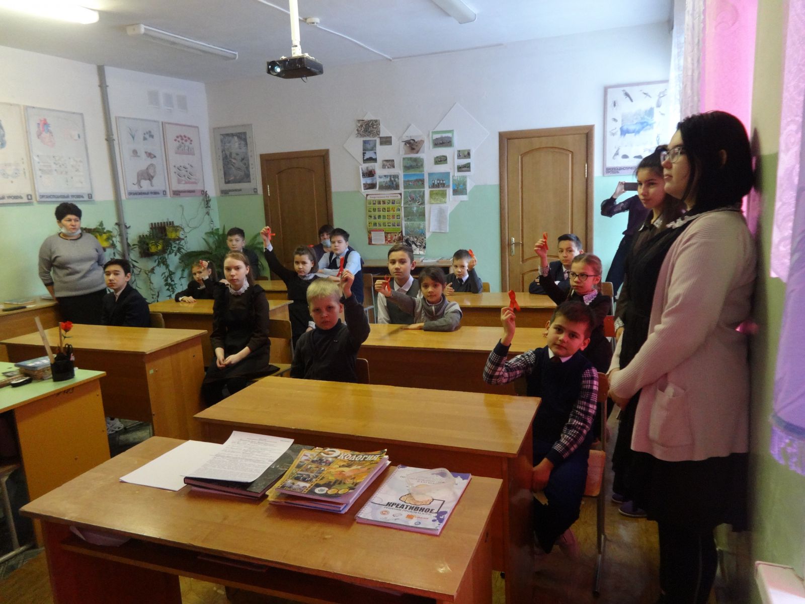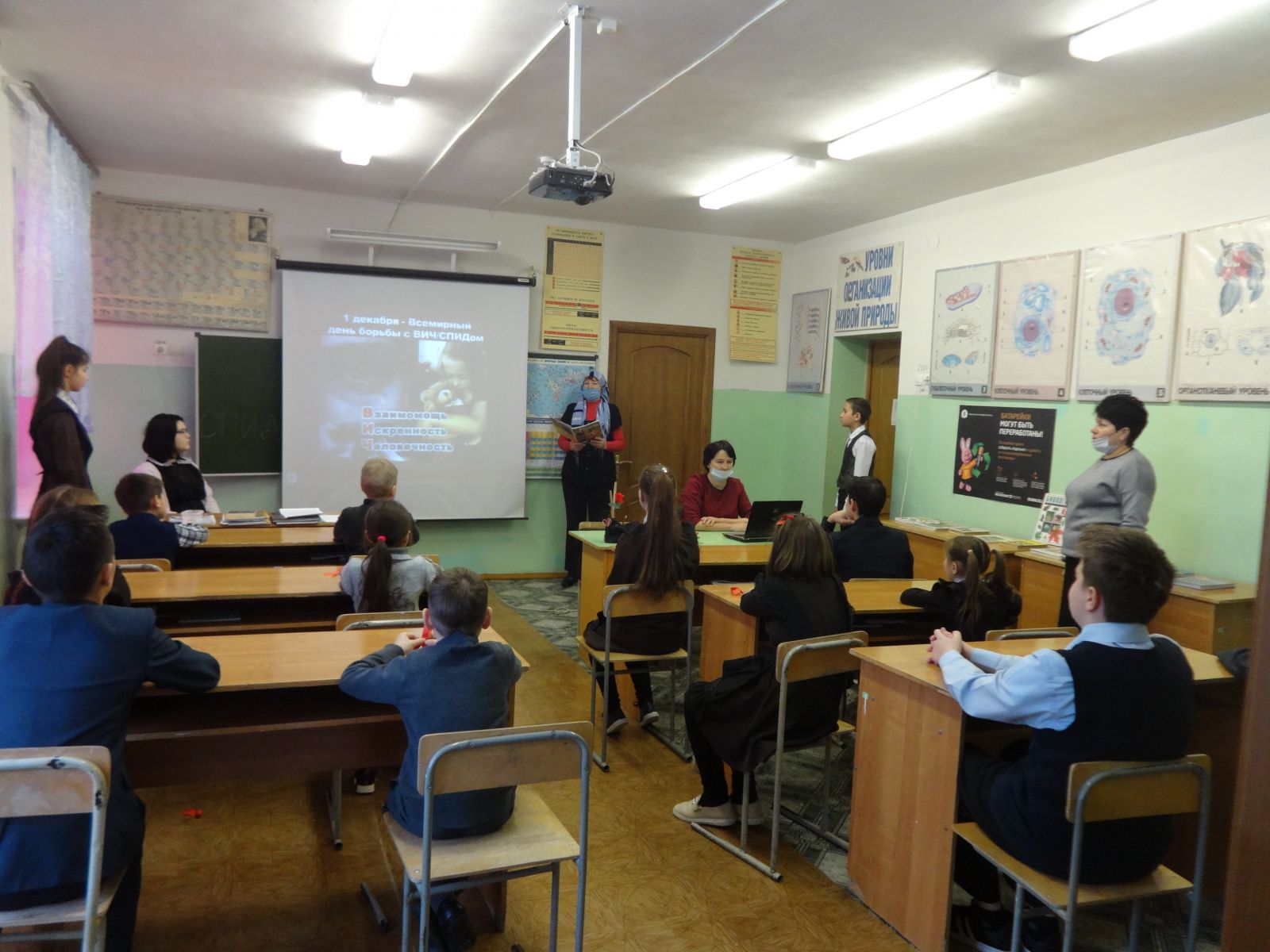 Учащиеся школы в этот день посмотрели видеоролик «Знай и помни, чтобы жить». Фильм познакомил ребят с историей Всемирного дня борьбы с ВИЧ/СПИДом, который служит делу укрепления организационных усилий по борьбе с пандемией ВИЧ-инфекции, продолжающей распространяться по всем регионам планеты. Каждый год Всемирный день борьбы со СПИДом проводится под различными девизами, отражающими существующие в данный момент насущные проблемы. Символом борьбы со СПИД является красная ленточка, и ни одна акция в этой области не обходится сейчас без нее. Обсудив видеоролик, дети пришли к выводу, день борьбы со СПИДом призван ломать стереотипы и оказывать все виды поддержки людям, встретившим этот ужасный недуг.