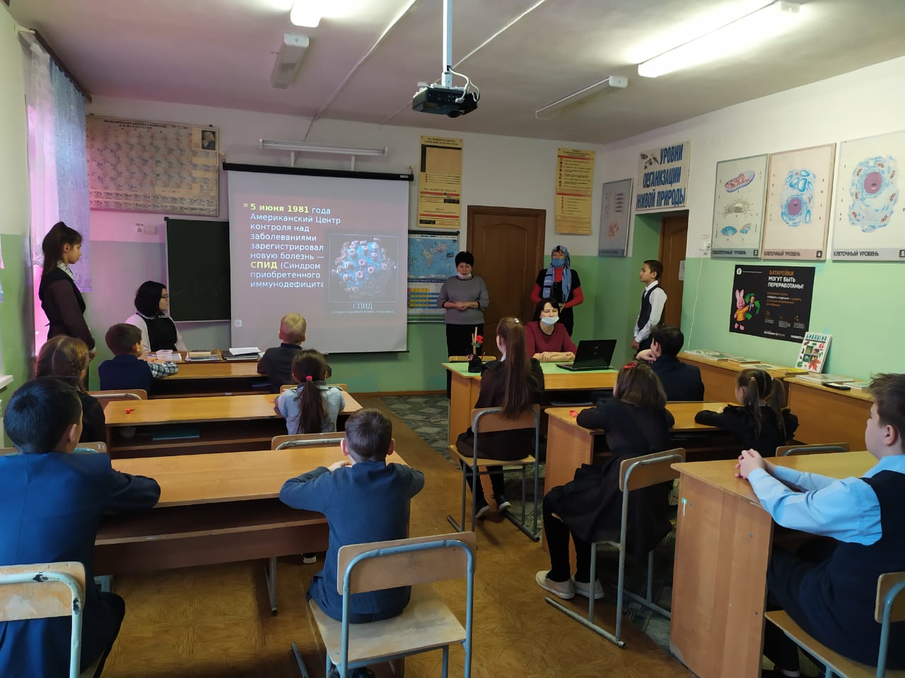 В Сугушлинской школе стало традицией проводить мероприятия, посвященные Всемирному дню борьбы со СПИДом. 1 декабря в кабинете биологии прошел экологический урок "СПИД - чума XX века". Цель проведения мероприятия: обобщение и закрепление знаний обучающихся о происхождении вируса иммунодефицита человека, о способах его передачи, течении болезни, способах защиты; выработка активной жизненной позиции по предотвращению поведенческих рисков, связанных с возможностью заражения ВИЧ; формирования убеждения в необходимости соблюдения здорового образа жизни с целью профилактики ВИЧ-инфекции; формирование представления о реальных масштабах распространения ВИЧ.