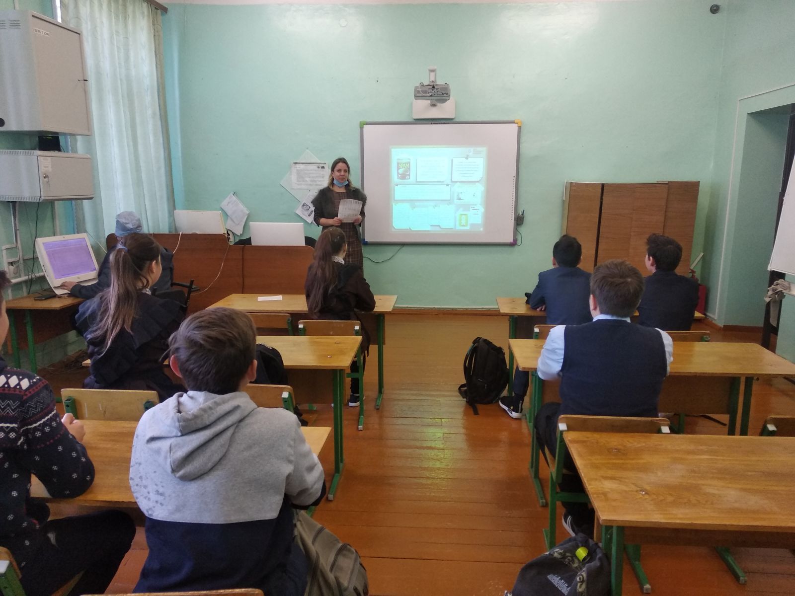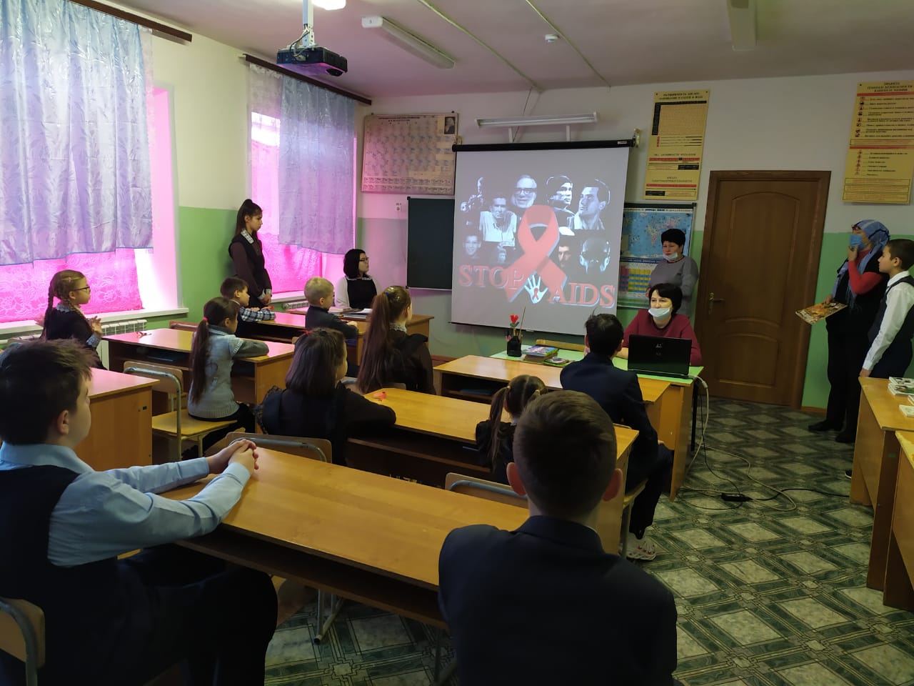 После просмотра видеоролика выступили учителя начальных классов Гильмутдинова Л.С., Фасхутдинова Ф.Ф., учитель русского языка и литературы Хабибуллина Л.Т.. О мерах профилактики СПИДа и COVID-19 выступила учитель биологии Ахметова Ф.А. Самый активный участник урока Гайнутдинов Адель получил приз от организатора.