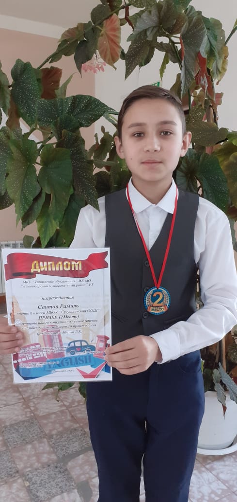 Саитов Рамиль, ученик 6 класса Сугушлинской школы занял второе призовое место в муниципальном конкурсе на лучшее чтение английского стихотворного произведения (руководитель Мусина Ландыш Рафаиловна). Молодец, Рамиль! Поздравляем! Дальнейших успехов тебе!