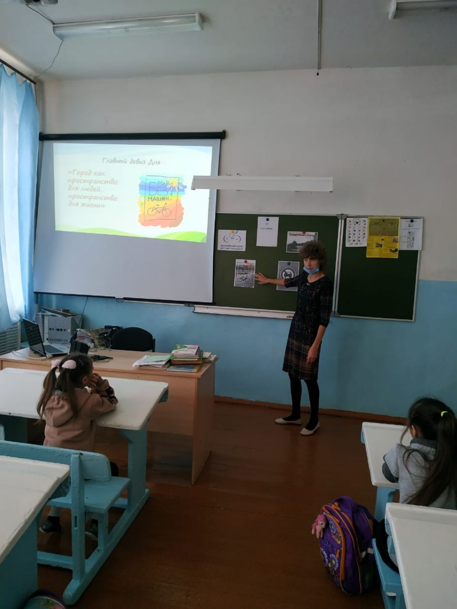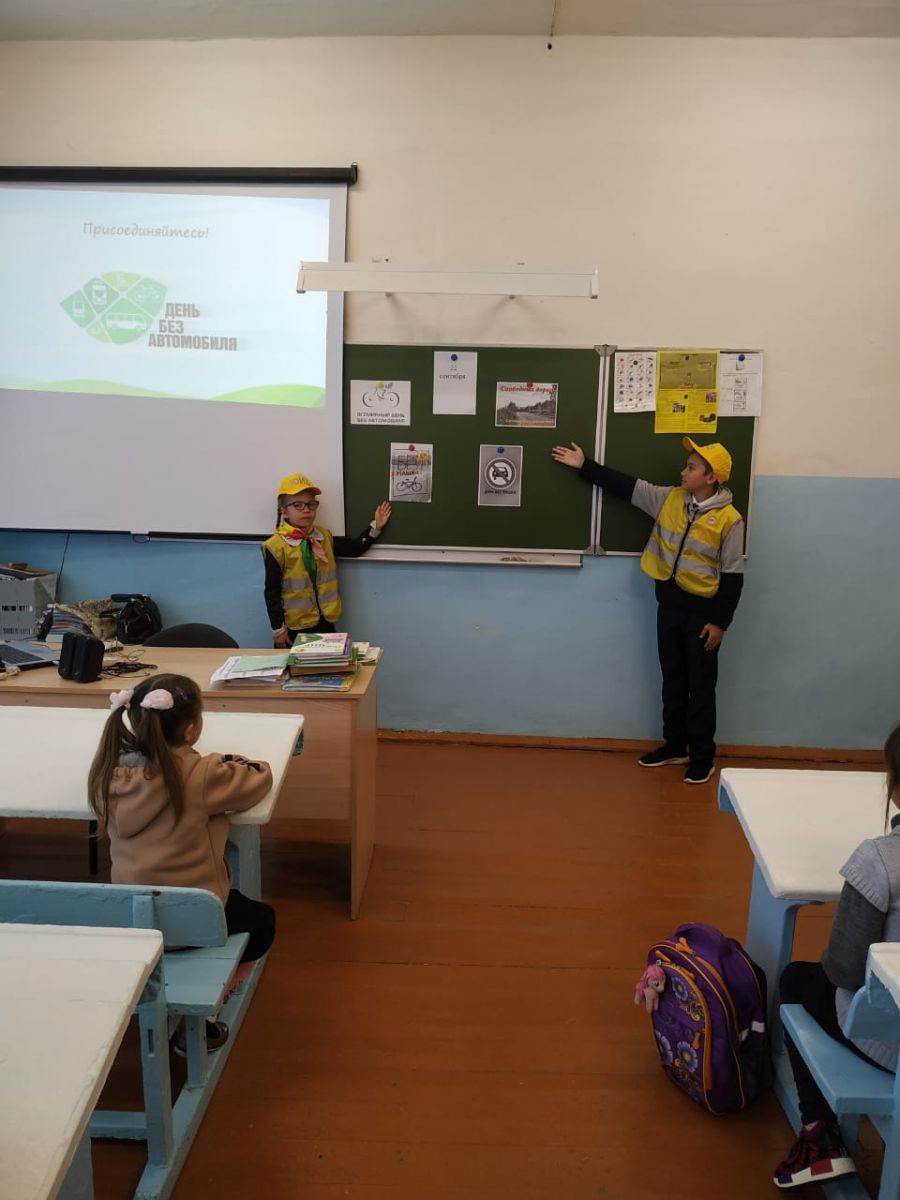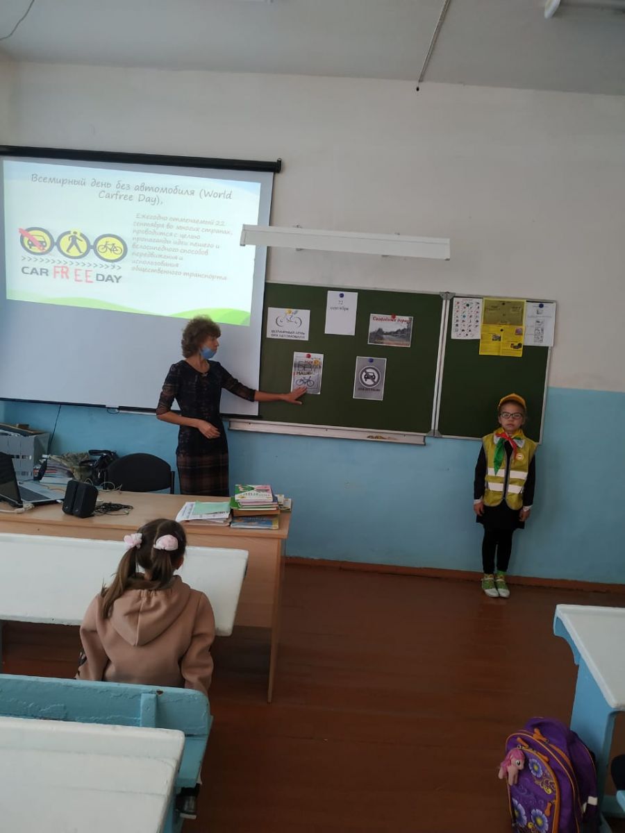 Ежегодно 22 сентября отмечается Всемирный день без автомобиля. Целью данного дня является пропаганда пешего и велосипедного способов передвижения и использования общественного транспорта и конечно же защита окружающей среды. Наша школа ежегодно отмечает этот день. Члены отряда ЮИД "Светофор" провели беседу с учащимися. Они рассказали историю появления этого дня, познакомили с девизом и эмблемой. В конце провели небольшую викторину о видах транспорта.