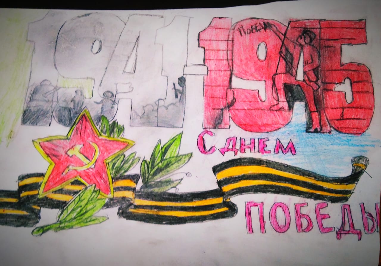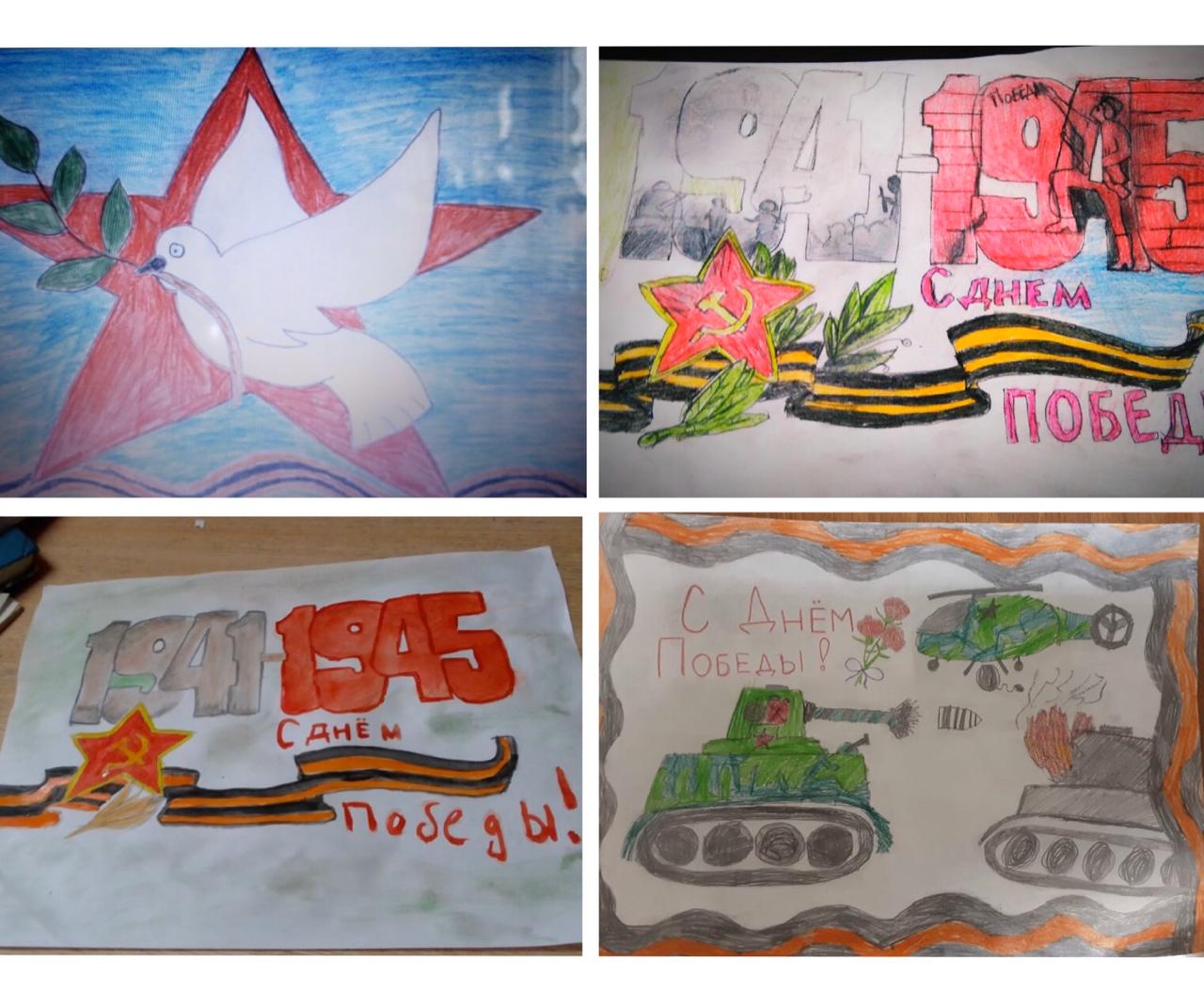 Учащиеся 1-4 классов на уроке ИЗО нарисовали рисунки ко Дню Победы.