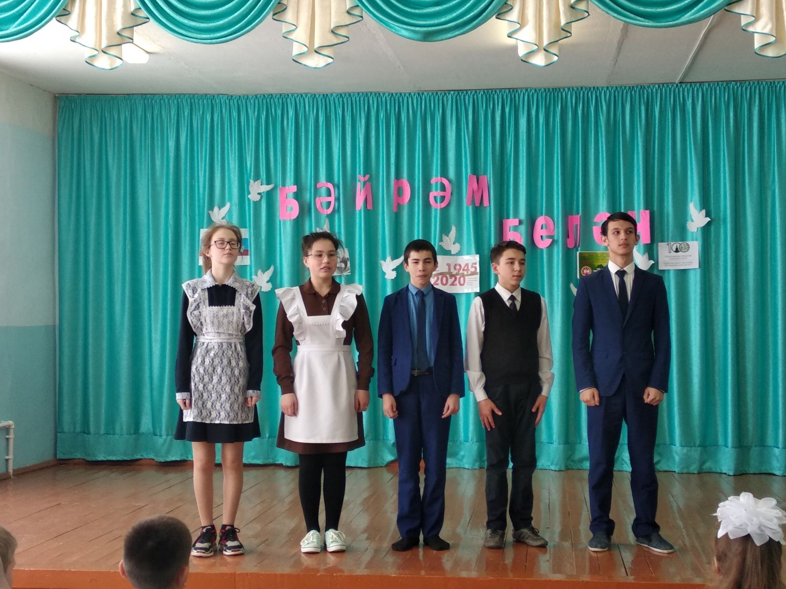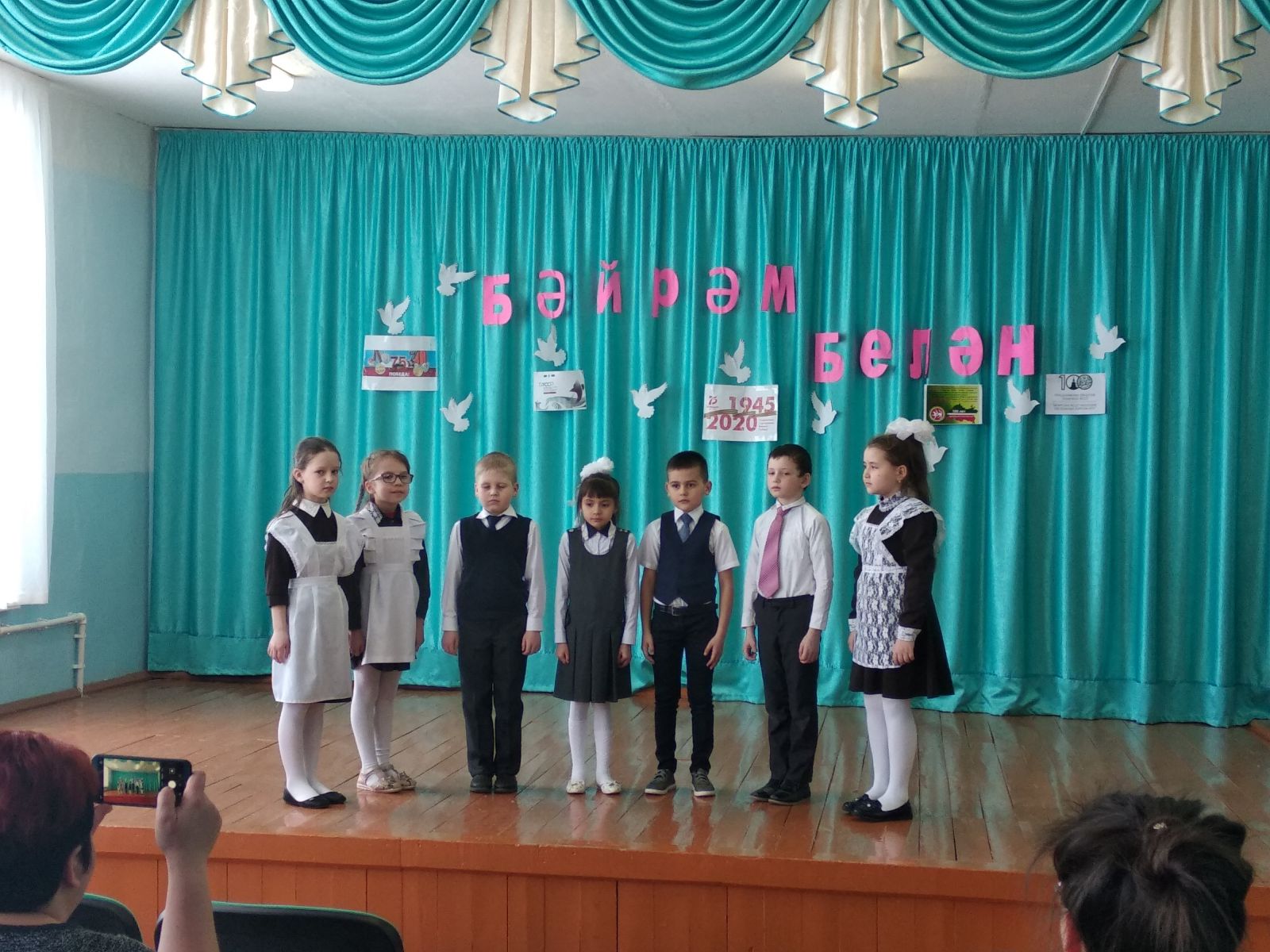 Сегодня в актовом зале школы прошел парад военных песен. Учащиеся 1-9 классов исполнили песни военных лет.