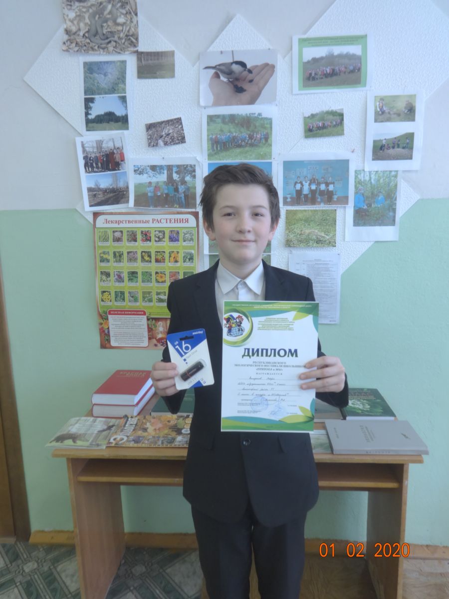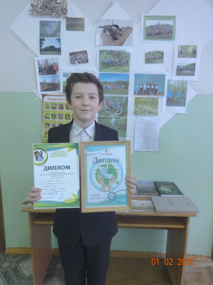 "Табигать һәм без" дип аталган укучыларның республика экологик фестивалендә "ЭКОобъектив" дип аталган фоторәсемнәр конкурсында Роберт 1 нче урынны алып җиңүче булды, Диплом һәм кыйммәтле бүләк алды.