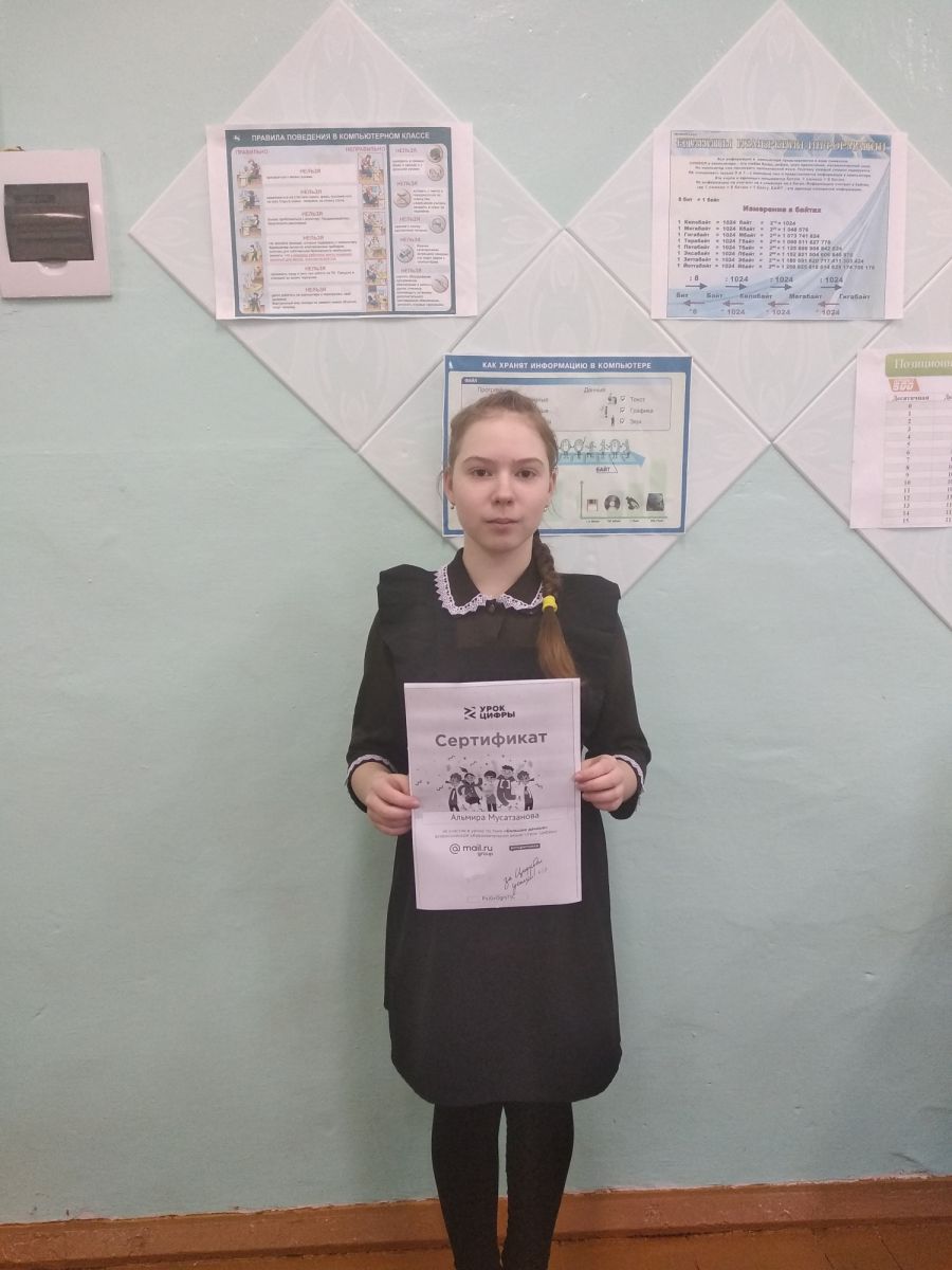 16-18 ноября в школе с 1 по 9 классах прошли Уроки цифры на тему "Большие данные". По итогам урока, учащиеся получили сертификаты.