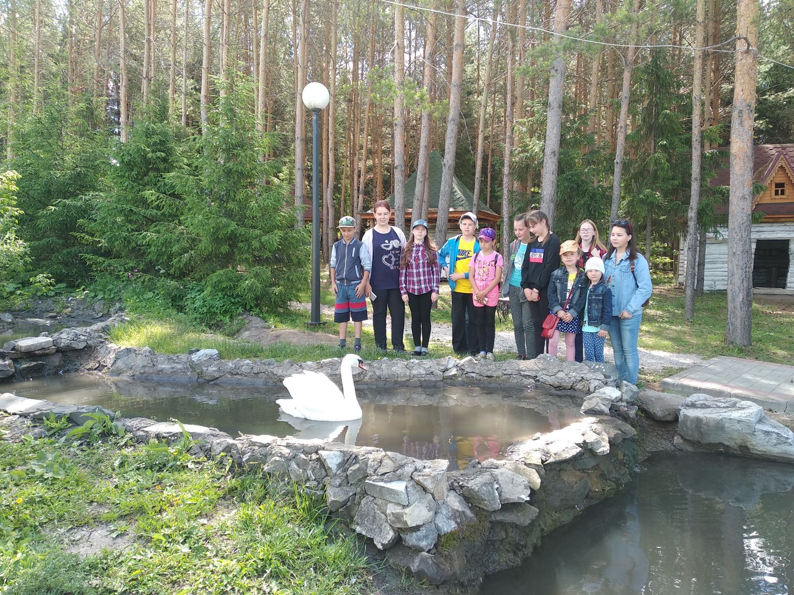Сегодня дети пришкольного лагеря вместе с воспитателями отправились на увлекательную экскурсию в одно из самых красивейших мест Лениногорского района - санаторий Бакирово. Природа села Бакирово, на территории которой расположился санаторий не перестает восхищать своей красотой и чистотой. Дети в сопровождении воспитателей прошлись по территории санатория, посетили местный зоопарк, лебединое озеро, термальные источники. Каждый смог попробовать полезную минеральную воду, умыться сероводородной водой. Для детей, на территории санатория, оборудована детская площадка с горками, качелями и лестницами. Ребята нашего пришкольного лагеря вдоволь наигрались на данной площадке. Сегодняшний день прошел с пользой для здоровья, дети получили массу положительных эмоций, многое узнали об истории санатория, о животных, живущих в зоопарке. Обязательно приедем сюда и в следующем году.