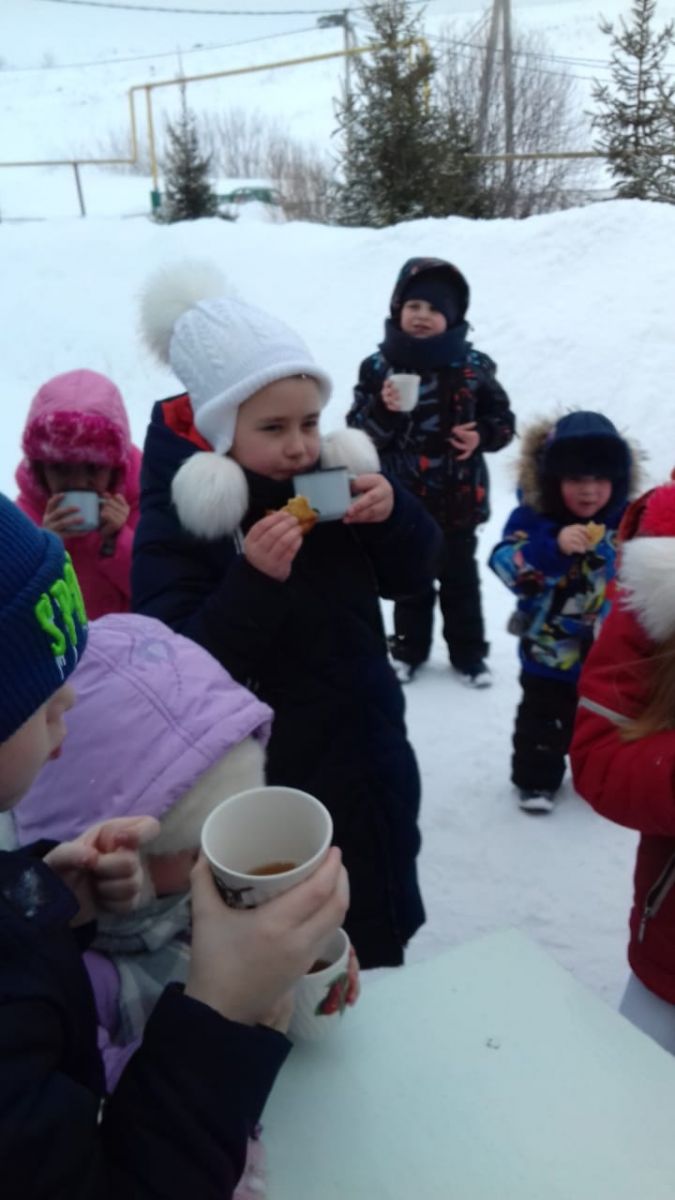 Воспитанники детского сада и учащиеся начальных классов соревновались между собой в различных спортивных состязаниях, вели хороводы, пели песни о весне. В конце мероприятия было организовано чаепитие на свежем воздухе, детей угощали главным символом Масленицы - блинами.