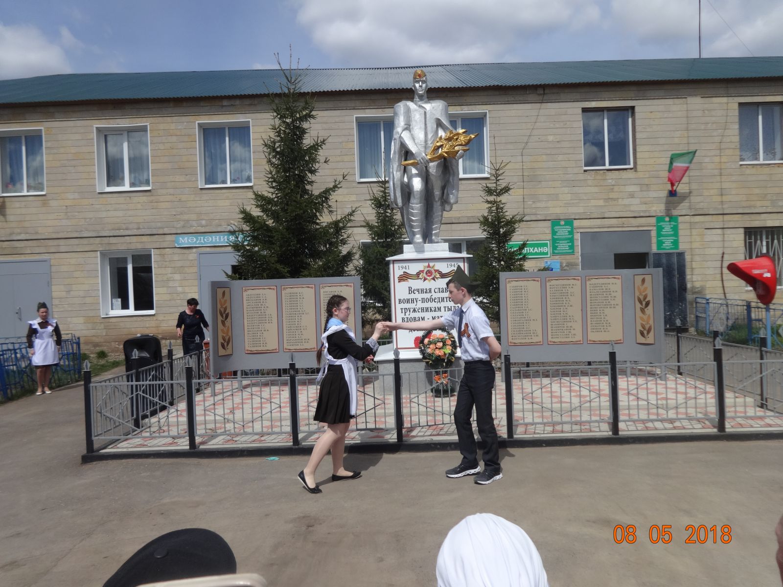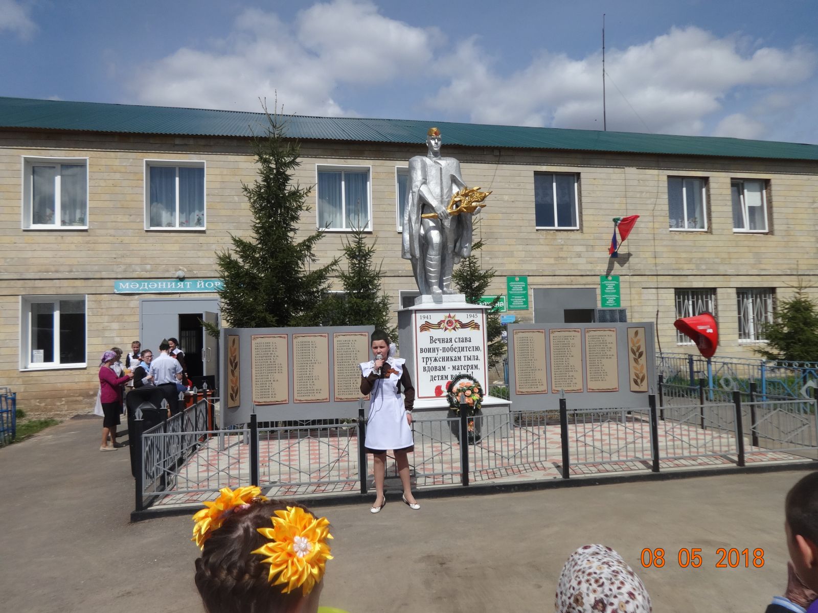 8 май көнне Сугышлы авылында Бөек җиңүнең 73 еллыгы уңаеннан митинг уздырылды.Мәктәбебез укучылары концерт куйдылар, ветераннарны бәйрәм белән котладылар. Соңыннын һәйкәл төбенә венок куелды.