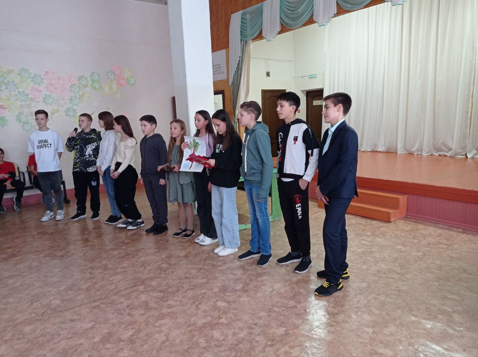 Опубликовано: 26.10.2023Сегодня в школе прошёл праздник - Осенний бал, для учащихся 7-11 классов. К мероприятию нужно было нарядить одного ученика в костюм овоща и защитить костюм. Ребята отлично справились с данным заданием и подготовили выступления на "отлично". Далее организаторы проводили различные игры, конкурсы, в которых ученики приняли активное участие. В конце праздника определили короля и королеву осеннего бала и конечно же осенняя дискотека.
