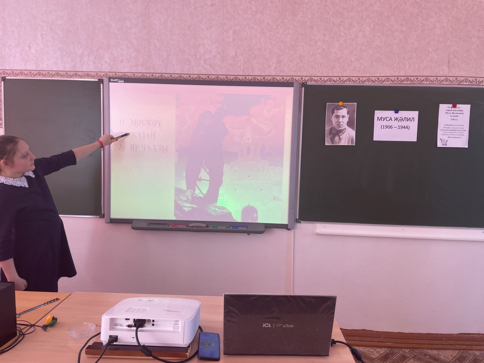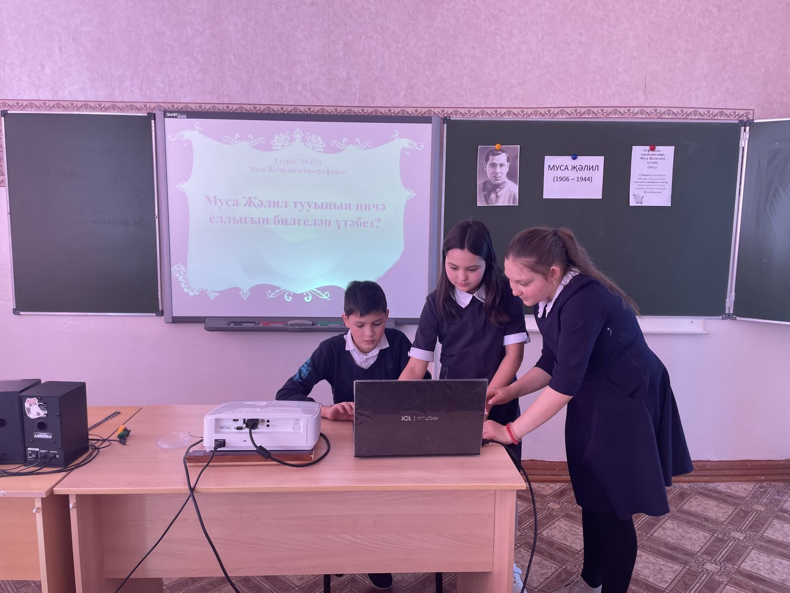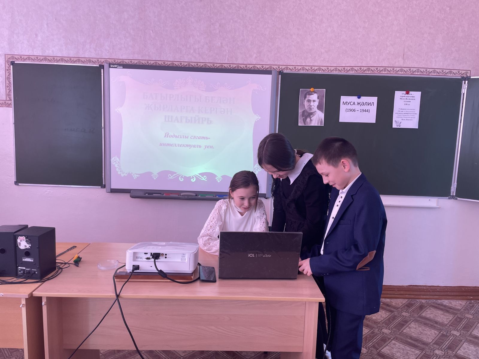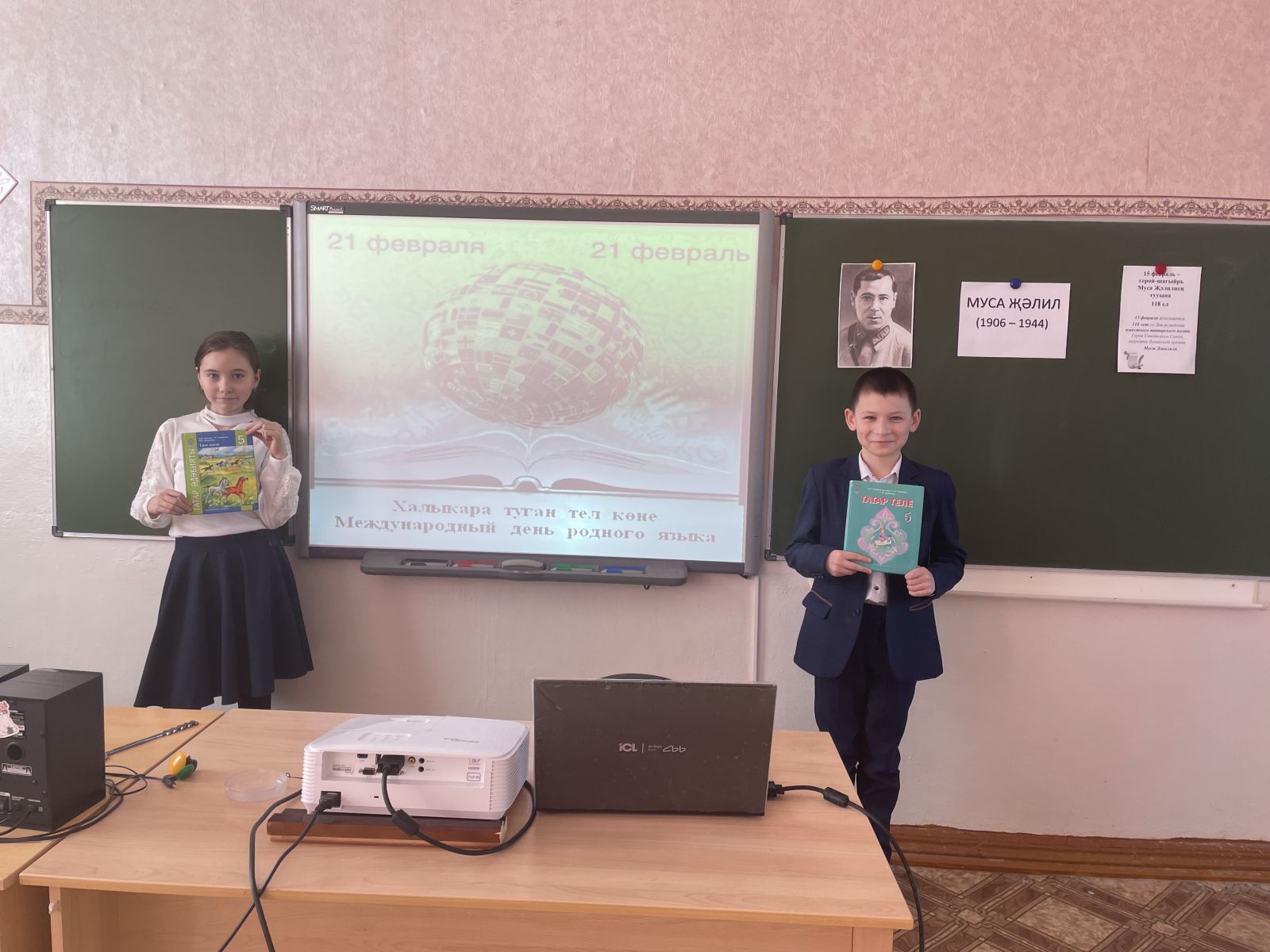 Опубликовано: 21.02.202421 февраль көнне 5 нче сыйныф укучылары белән "Йолдызлы сәгать» интеллектуаль уен уткәрелде. Укучылар Муса Җәлил турында белемнәрен картада, карточкаларда, тест эшләп тикшерделәр. Төркемнәрдә туган телгә багышланган кызыклы биремнәр утәделәр. ( Муса Җәлил шигырен төзу hәм сәнгатьле уку, мәкальнең дәвамын табу hәм аңлату, матур сузләр әйту). Уен куңелле hәм эчтәлекле узды.