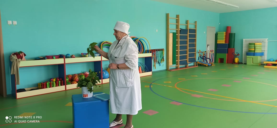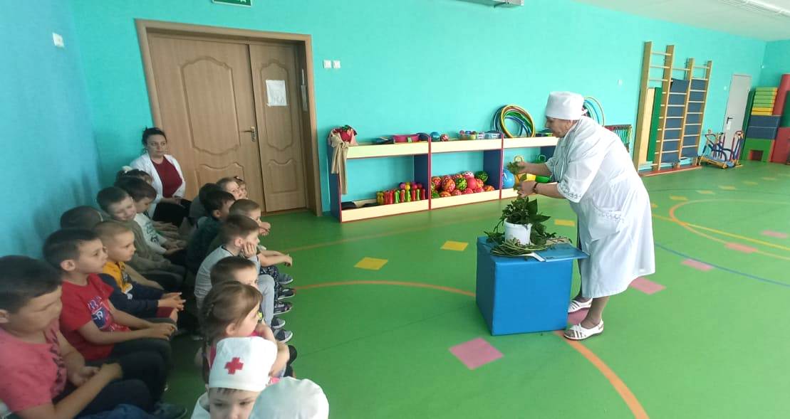 С воспитанниками средней, старшей и подготовительной групп старшая медицинская сестра Салимова Г.Ш провела беседу об укреплении здоровья, о пользе витаминов, лекарственных растений.