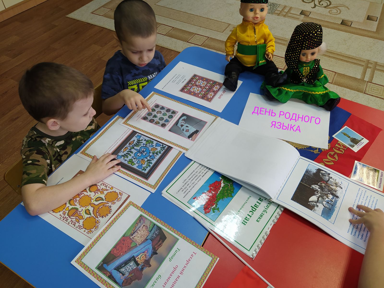 Россия — многонациональное государство. Каждая нация — это неповторимая культура, история, традиции и, конечно же, язык. Более 130 языков звучат в нашей стране. Конечно же, у каждого человека есть Родина и свой родной язык. Каждый человек должен знать и хорошо говорить на своём родном языке. Обычно первый язык, на котором учится говорить человек — родной язык. На нем говорят, пишут письма, стихи, поют песни. Это – родной язык. День родного языка прошел в нашем детском саду. Дети читали сказки, стихотворения русских и татарских авторов, играли в национальные игры, дидактические, подвижные. Изучали быт и традиции народов , проживающих в нашей Республике.