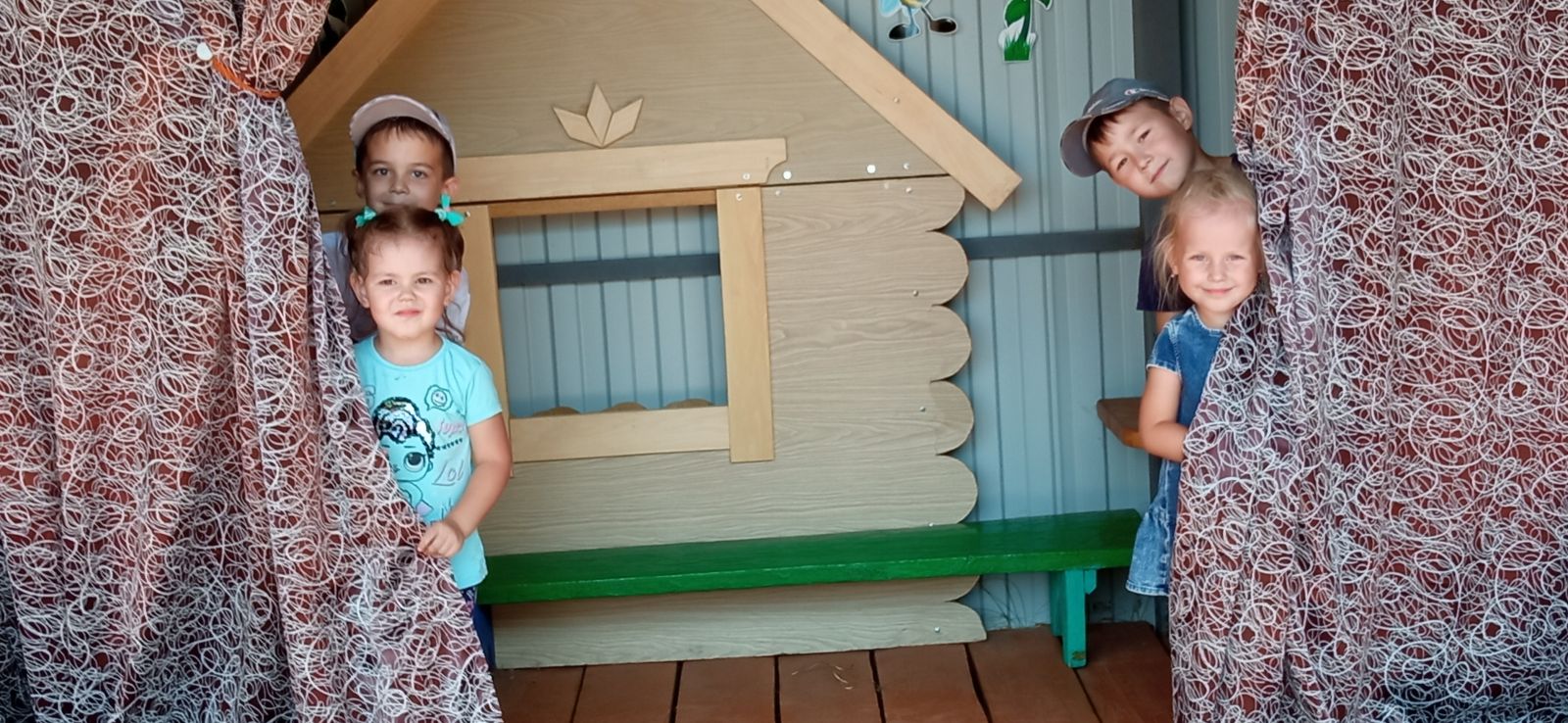 По дорожной карте работы над проектом "Вклад в будущее" была оборудована импровизированная Летняя эстрада, на которой ставятся сказки, спектакли, музыкальные постановки. Педагоги детского сада порадовали детей ,поставив сказку "Заюшкина избушка". Особенно понравилась сказка младшим детям,они реагировали очень эмоционально ,искренне пререживали за зайчика.