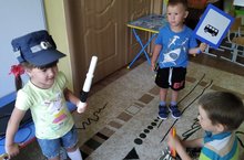Во 2 младшей группе было проведено занятие в форме путешествия , на котором дети начали знакомство с видами пассажирского транспорта- наземным и воздушным. Дети пели и играли под музыкальное сопровождение и с удовольствием проводили время, играя в сюжетную игру с атрибутами по Правилам дорожного движения .