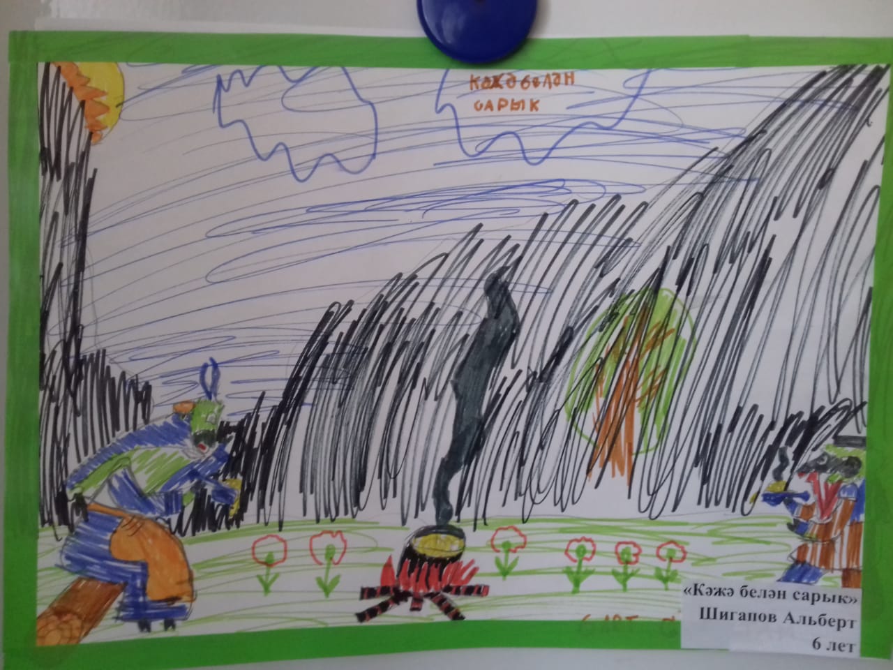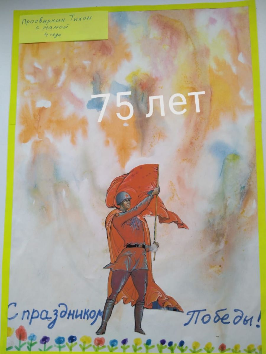 В канун празднования великой Победы в детском саду была организована виртуальная выставка детских работ на тему Великой отечественной войны. Дети рисовали в условиях дома рисунки по данной тематике и присылали педагогам . Затем была организована общая рассылка рисунков по всем группам.