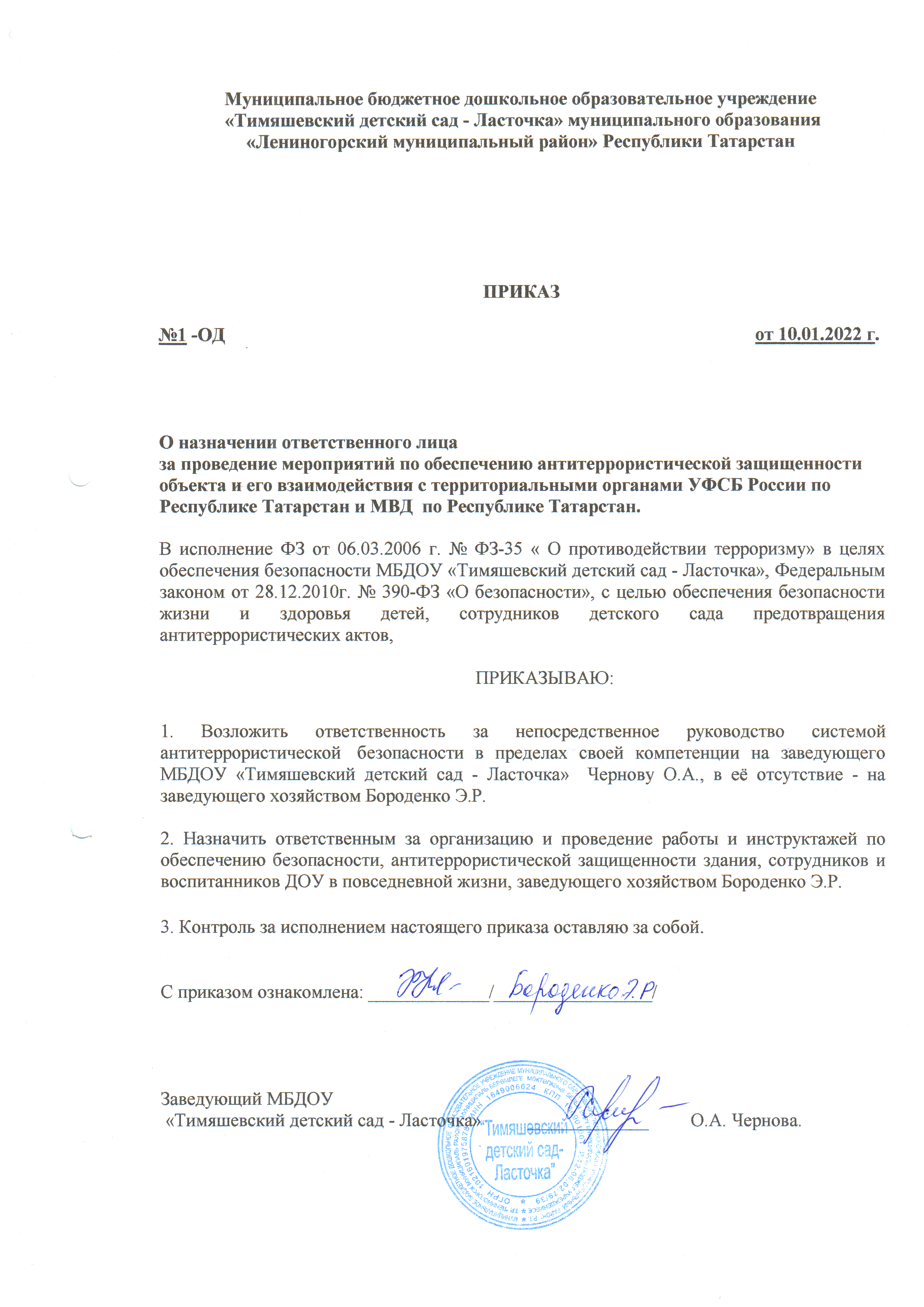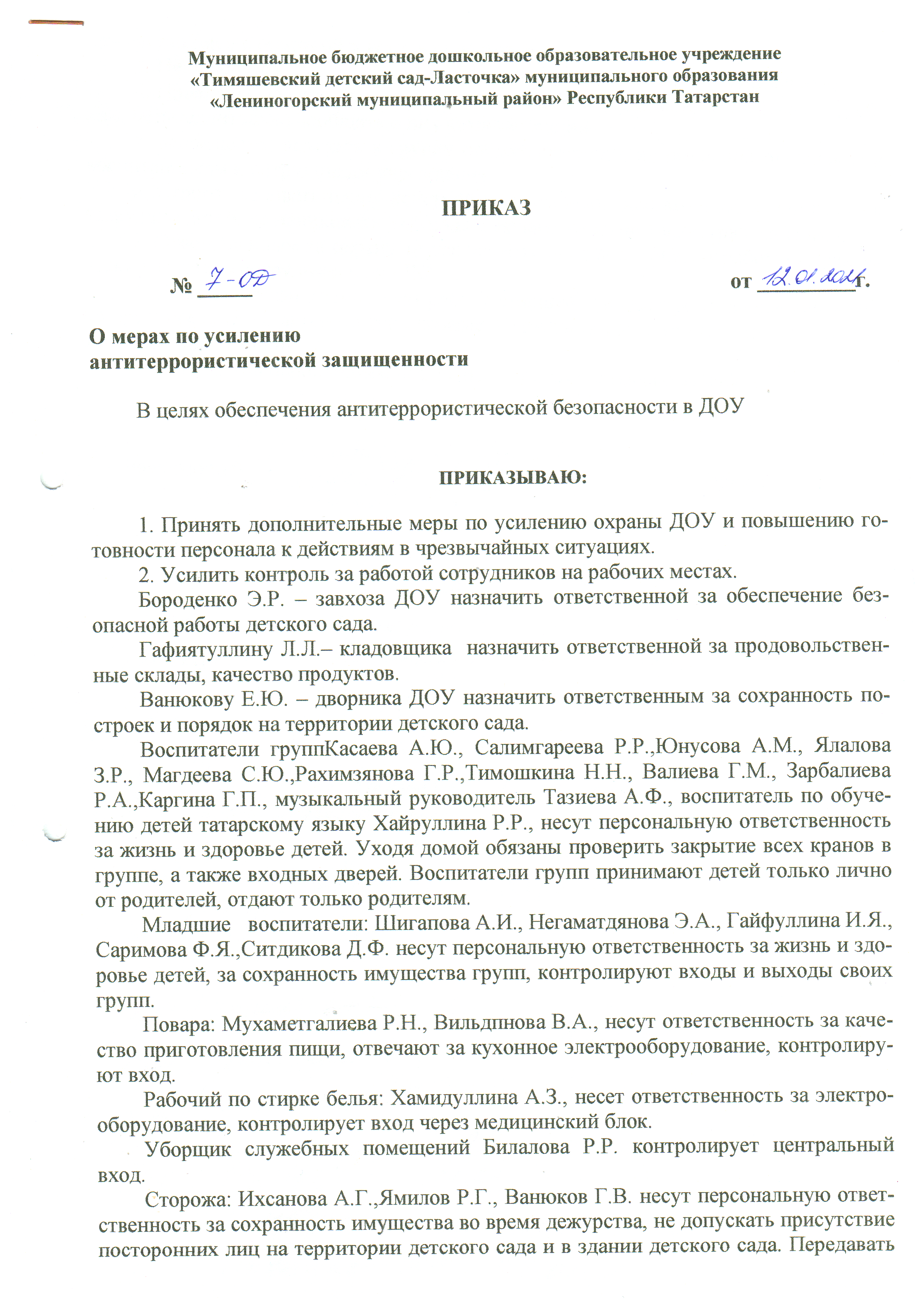 Приказ о мерах по усилению антитеррористической защищённости 2021г.