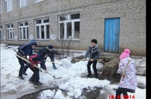 Экологик ике айлык дәвам итә. Укучылар территорияне кардан чистарталар.