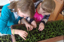 Ученики пикировали рассаду помидор.