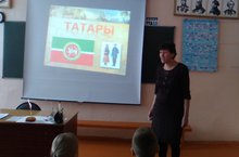 В рамках проведения мероприятий, посвященных 100-летию со дня образования ТАССР, педагог-организатор Сабирова М.М. провела классный час “100 лет ТАССР” для учащихся 1-8 классов. В ходе классного часа была показана презентация о истории становления Республики. Учащимся продемонстрированы исторические факты образования татарской народности, знаменитые люди Республики, народные промыслы, национальные костюмы и татарские национальные праздники.