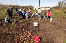 Җәйге ял вакытында укучылар сыйныф җитәкчеләре белән бергә утыртылган культураларны карыйлар,су сибәләр, сирәклиләр. Балаларның һәм укучыларның көзге хезмәтләре мул уңыш белән бүләкләнә.Уку вакытында безнең мәктәп пешекчесе чөгендер,кишер,кәбестә,суган,помидор,яшел тәмләткечләрне кулланып ,балалар өчен төшке аш әзерли. Мәктәп яны участогында укучылар бик тырышып бәрәнге уңышын алдылар.Афәрин!