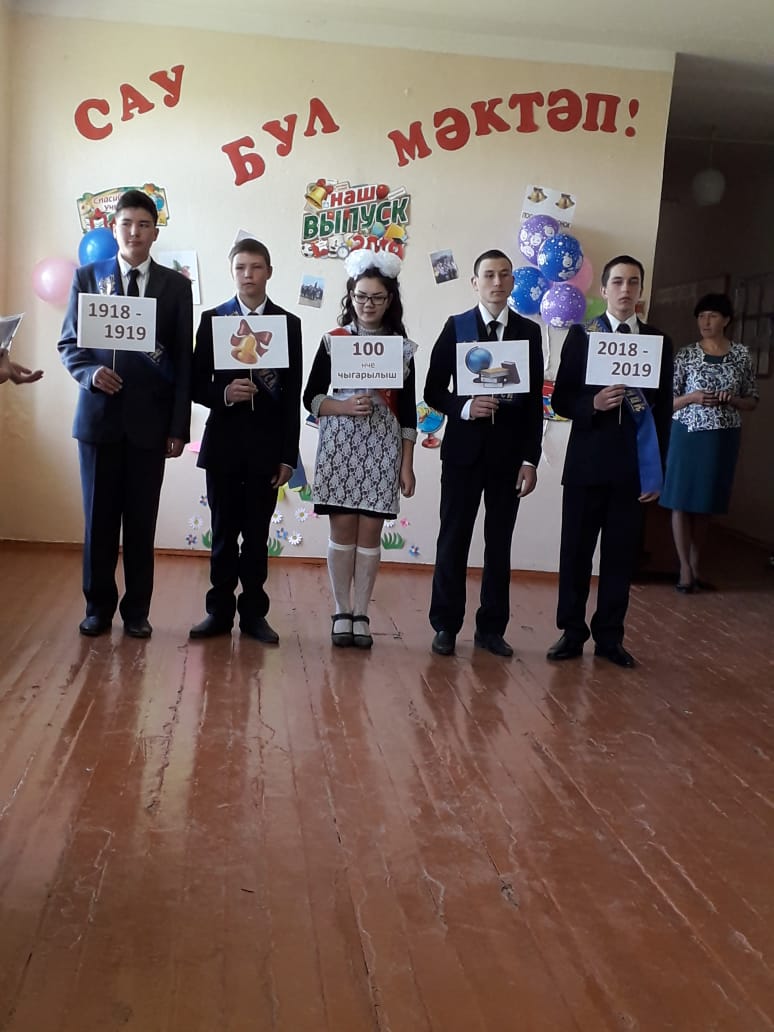 Бәйрәм белән чыгарылыш сыйныф укучыларын :1 сыйныф укучылары, әти-әнилэр, авыл җирлеге башлыгы, мәктәп директоры һәм яраткан укытучылары котлады. Бәйрәмгә килгән кунакларны да күңелләре белән ерак балачак елларына алып киткән, күзләрне дымландырган бу тантанада күңелле һәм моңсу мизгелләр күп булды.Бу көн укучыларыбыз, укытучыларыбыз өчен генә моңсу мизгелләр түгел, әти-әниләр өчен бигрәк тә кыен. Аларның, мөгаен, озакламый үзләренең бәгырь җимешләрен шәһәргә, уку йортларына җибәрәчәкләре турында, киләчәктә балалары белән сирәктән-сирәк очрашачаклары турында уйлап күзләре яшьләнде. Әйе, вакыт сиздерми генә үтеп киткән.Балачак инде артта калды. Алда беренче сынаулар көтә. Ни генә булмасын, укучыларның имтиханнарны уңышлы тапшыруларын телибез! Аларга дөньяның матурлыгын, тормышның асылын, яшәү ямен һәм мәгънәсен аңлап яшәргә язсын.