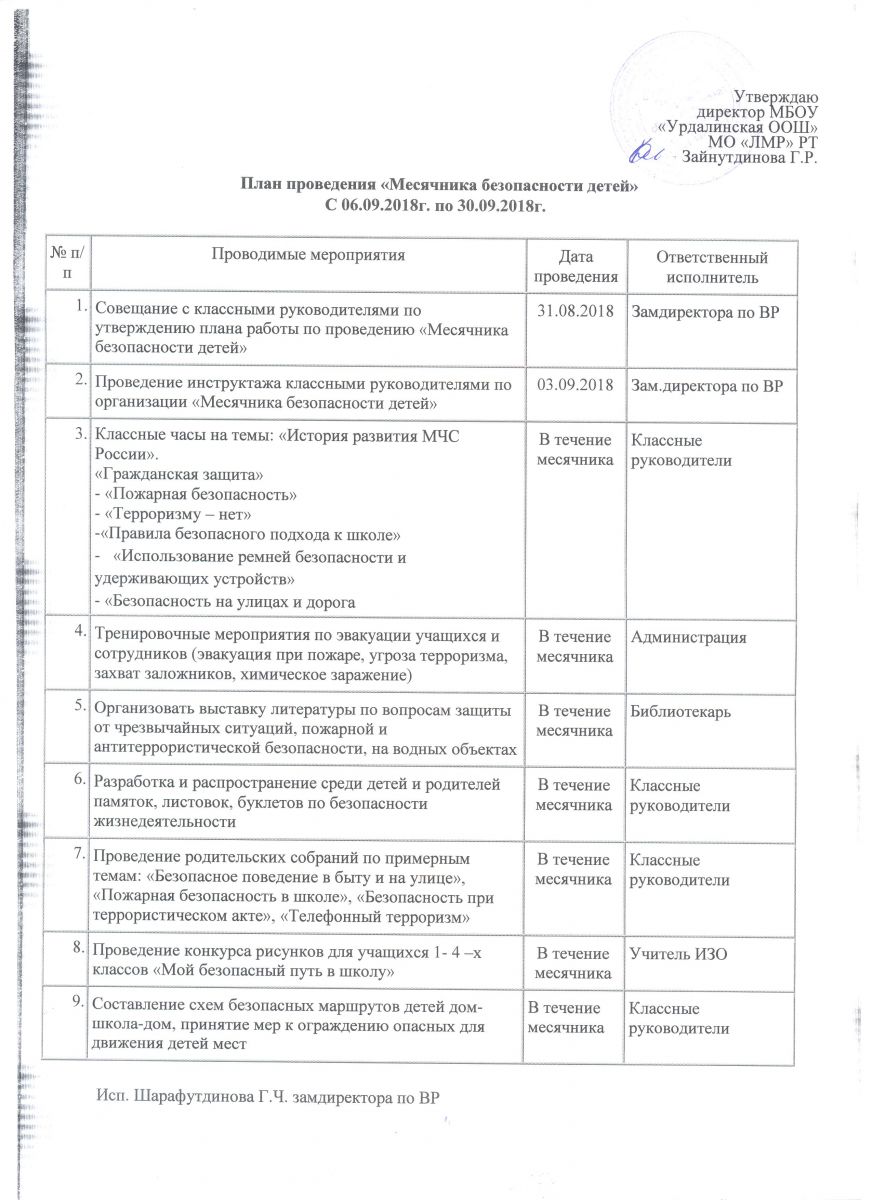 На основании приказа МБОУ «Урдалинская ООШ» МО ЛМР РТ от 6.09.2018г. О проведении месячника безопасности декадника «Экстремизму-Нет!» в период с 6 по 30 сентября 2018г. в школе проводится месячник безопасности и декадник «Экстремизму-Нет! С 6-12 сентября 2018 г.. План здесь -