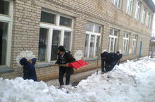 В рамках акции "Эковесна-2018" учащиеся начали очистку территории школы от снега