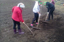 Учащиеся 5-9 классов на пришкольном участке посадили картофель для школьной столовой