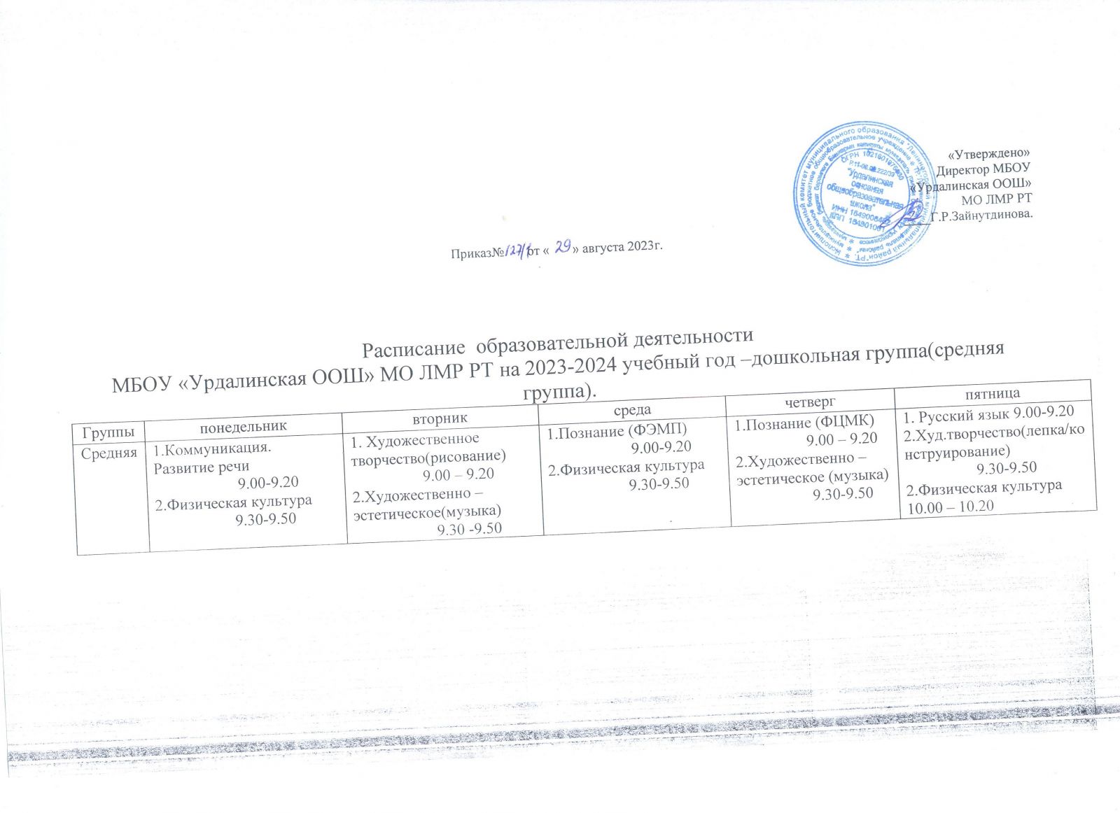 Расписание непосредственной образовательной деятельности на 2023-2024 учебный год (дошкольная группа)