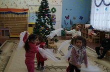Балалар белән Яңа ел бәйрәме турында әңгәмә үткәрдек .Бәйрәмгә әзерлек эшләрен башлап җибәрдек.Матур җырлар,биюләр ,бүлмәне матур итеп бизәп куйдык.