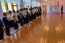 Уку елын Россия һәм Татарстан әләмнәрен күтәрүдән башлап җибәрдек. Бу атнада әләмнәрне мәктәп практикасын беренче булып үтәп бетерүче Дементьева Анастасия күтәрде.