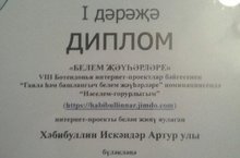 VIII Дөньякүләм “Белем җәүһәрләре”интернет-проектлары бәйгесе җиңүчесен котлыйбыз! 20.10.2017 20 октябрь көнне Казанның Г.Камал театры бинасында VIII Дөньякүләм “Белем җәүһәрләре” файдалы татар интернет-проектлары бәйгесе җиңүчеләрен тәбрикләү тантанасы узды. ТР Мәгариф һәм фән министрлыгы, ТР Мәдәният министрлыгы һәм Татнетны үстерү фонды тарафыннан “Белем.ру” порталы кысаларында оештырылучы бәйгегә быел Татарстанның унөч шәһәр һәм районыннан, шулай ук Самара өлкәсеннән, Үзбәкстаннан барлыгы 80 гариза килгән иде. Тәкъдим ителгән сайтлардан 60 сайт бәйгегә кабул ителгән һәм 9 номинация буенча бәяләнде. “Белем җәүһәрләре” бәйгесенең максаты – татар телле сайтларны барлау, аларның уңышларын билгеләү һәм таныту. Әлеге бәйгедә нигездә мәктәп укытучылары һәм укучыларының катнашуы күңелле күренеш. Укытучы кеше һәрвакыт укып, яңалыкны өйрәтеп торырга тиеш. Үзегезнең укучыларыгызга заманча таләпләргә туры килә торган заманча технологияләрне кулланып, белем һәм тәрбия бирүегез һәм заман таләбе белән бергә атлавыгыз әти-әниләргә дә, укучыларга да, мәгариф өлкәсендә эшләүчеләргә үрнәк булып тора,- диде Татнетны үстерү фонды җитәкчесе, Белем.ру порталы башлыгы, Казахстан һәм Рунет премияләренең жюри әгъзасы, Татарстан Мәгариф министрлыгы үткәрә торган “Юный программист” бәйгесенең даими жюри әгъзасы, информатика дәреслекләре авторы һәм әлеге бәйгенең оештыру комитеты рәисе Раил Гатауллин. Башка еллардан аермалы буларак, быел җиңүчеләр төрле номинацияләрдә 1нче, 2нче, 3нче урын алды, иң уңышлы проектларга Гран-при тапшырылды. “Рәхмәт хаты”на ия булучыларны да бүләкләделәр. Лениногорск районы Урмышлы төп белем бирү мәктәбенең 8нче сыйныф укучысы Хәбибуллин Искәндәр Артур улы да “Белем җәүһәрләре - 2017” бәйгесендә беренче урынга лаек булып кыйммәтле бүләккә ия булды. Ул 2013 нче елда “Нәселем-горурлыгым”исемендәге гаилә сайтын ясый һәм 4 ел рәттән әлеге интернет-проекты белән “Гаилә һәм башлангыч белем җәүһәрләре” номинациясендә катнашып призлы урынга ия булып килде. Биредә Гаиләнең күренекле шәхесләре, гореф-гадәтләре, йолалары, нәсел шәҗәрәсе, үзенең язган шигырьләре, Урмышлы авылының фольклоры, Районыбыз каһарманнары һәм башка бик күп кызыклы эшләре урнаштырылган. Шулай ук мәктәбебезнең педагог-оештыручысы – Хәбибуллина Эльмира Гаяз кызының “Бәхетле балачак” исемле шәхси сайты, “Кыңгыраулар” исемендәге әдәби түгәрәкнең сайтлары да ТР Мәгариф һәм фән министрлыгы, ТР Мәдәният министрлыгының “Рәхмәт хатлары” белән бүләкләнделәр. Җиңүчеләрне бүләкләү тантанасы җырчыларның һәм артистларның чыгышлары белән бергә үрелеп алып барылды. Урмышлы төп белем бирү мәктәбенең шундый зур уңышларга ирешүе белән без чын күңелдән горурланабыз.