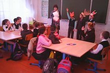 Театр һәм балалар атналыгы кысаларында укучыларның чыгышлары дәвам итә. Бүген Газизова Р.М. театр тарихы белән таныштырды, аның җитәкчелегендә 5-6нчы сыйныфлар Г.Камалның "Беренче театр"ын сәхнәләштерделәр.