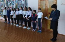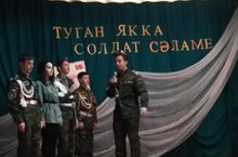 Кызлар бүген мәктәбебезнең укучы егетләрен һәм Фәрхәт абый белән Рафаэль абыйларны котлап чыгыш ясадылар. -