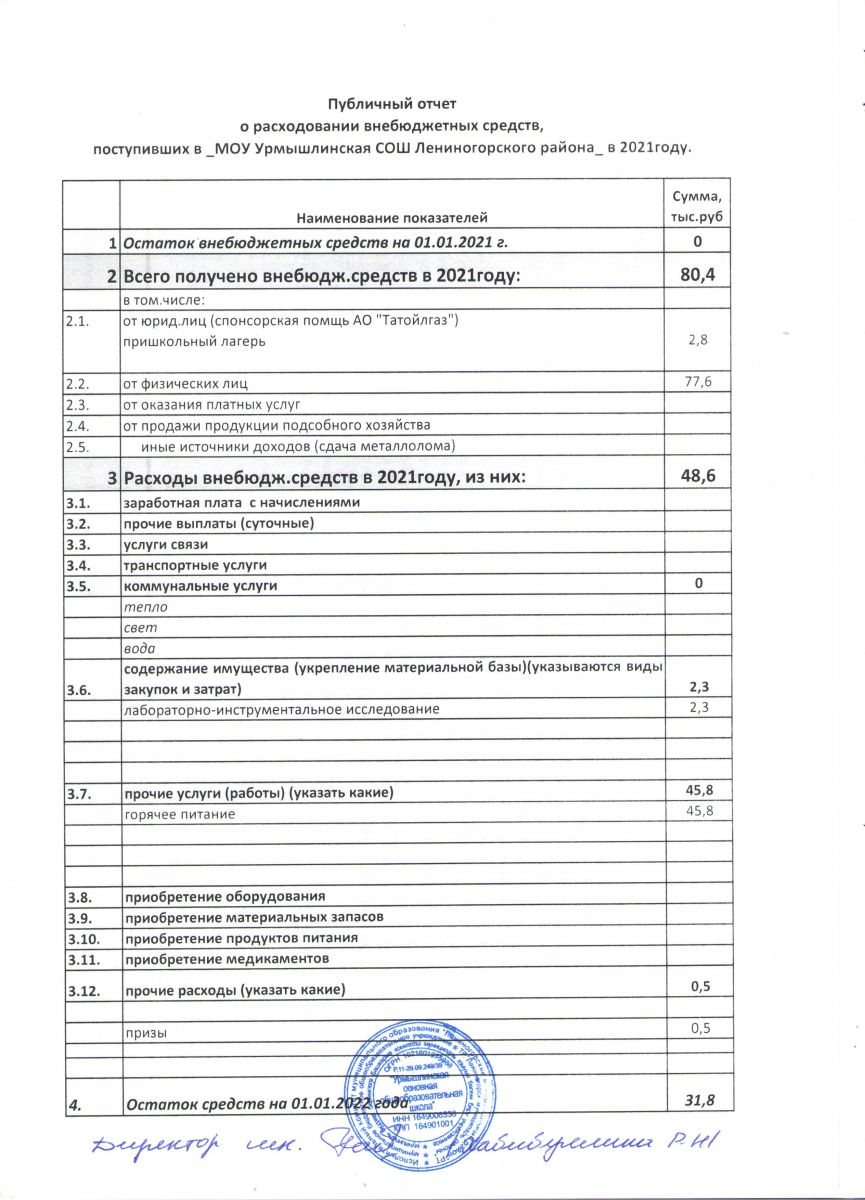 Публичный отчет о расходовании внебюджетных средств в 2021году