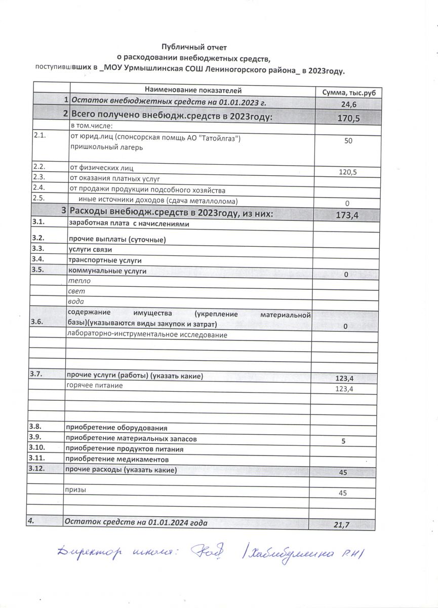 Публичный отчет о расходовании внебюджетных средств в 2023году