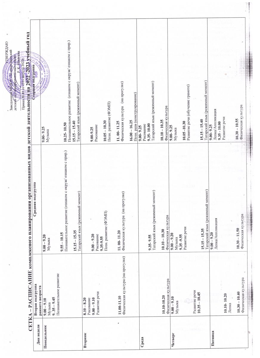 сетка-расписание организованной образовательной деятельности 2022-2023 учебный год
