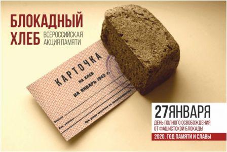 С 18 по 27 января во всех регионах нашей страны проводится Всероссийская Акция памяти «Блокадный хлеб». Акция призвана напомнить о мужестве жителей Ленинграда, переживших беспрецедентную блокаду миллионного города вражескими захватчиками.Блокада Ленинграда длилась 872 дня. И это не просто цифра - каждый день стал тяжелым испытанием в жизни блокадников. По разным подсчетам, в городе погибло от 692 тысяч до 1,5 миллионов человек – и 97% из них умерли от голода. Единственной надеждой на завтрашний день был паек. Буханка хлеба постепенно превратилась в 125-ти граммовый кусочек – именно такой была минимальная норма выдачи хлеба для жителей блокадного Ленинграда.