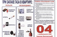 - при внезапном прекращении подачи газа немедленно закрыть краны горелок газовых приборов и сообщить в аварийную газовую службу по телефону «04»;
