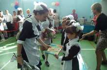 В МБОУ Зеленорощинское СОШ им. М.Горького прошла торжественная линейка посвященная Дню Знаний. Выпускники вручили подарочные тетради для первоклассников (8 учеников) Министерства экологии РТ.
