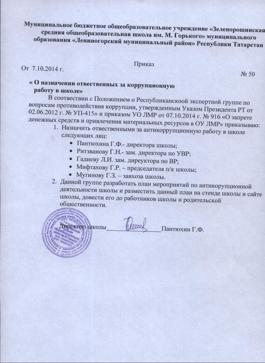 Приказ о назначении ответственных за антикоррупционную деят-ть