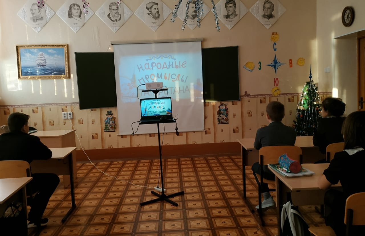 Опубликовано: 15.12.2023В рамках Года национальных культур и традиций , а также с целью формирования у обучающихся представления о важности сохранения и развития духовных ценностей, возрождения исконных национальных традиций, развитие национальных ценностей, обычаев культуры и традиций народов Республики Татарстан для учащихся 6 класса был проведен классный час «Народные промыслы Республики Татарстан» . Ребята познакомились с понятиями «ремесло», «промысел», многообразием существующих видов народных промыслов на территории России.В конце занятия ребята посетили школьный музей, где рассмотрели предметы народных промыслов прошлых времен.