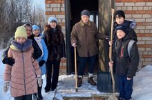 Безнең мәктәпнең 5-6 сыйныф укучылары ветеран укытучыбыз Хайруллин Минеһади Галиулла улына хәл белешергә, булышырга барып кайттык. Без анда сөйләшеп утырдык, укучылар белән капка төбендәге карларны көрәдек. Саулык- сәламәтлек теләп өйләргә таралыштык. Укучылар саф һавада уйнап- көлеп, шаярып бик күңелле генә йөреп кайттылар.