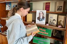 Язучы публицист Алексей Толстойның тууына 140 ел тулу уңаеннан " Алексей Толстой һәм без" дип аталган китап күргәзмәсе оештырылды. Бу китаплар арасында язучының " Петр Первый", " Детство Никиты"," Хождение по мукам» , һ. б. китаплар да урын алган. Укучылар бик кызыксынып таныштылар.