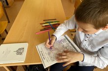 Бүген , 26 нчы апрель, бөек шагыйребез Габдулла Тукайның туган көне. Башлангыч сыйныф укучылары тәнәфестә ял иткәндә шагыйрьнең әкиятләрен искә төшерделәр,рәсемнәрен төсле каләм белән буядылар. Әкият геройларын танып , эчтәлеген сөйләделәр,табышмакларга җаваплар эзләделәр. Вакытны күңелле үткәрүче китапханәче Резедә Камил кызы Камалетдинова.