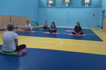 Участники расположились на индивидуальных ковриках и приготовились к занятию. Инструктор рассказала, что такое хатха - йога, чем она полезна для организма и как она выполняется. Каждое упражнение имеет свое название и способствует оздоровлению каких-либо внутренних органов и частей тела.